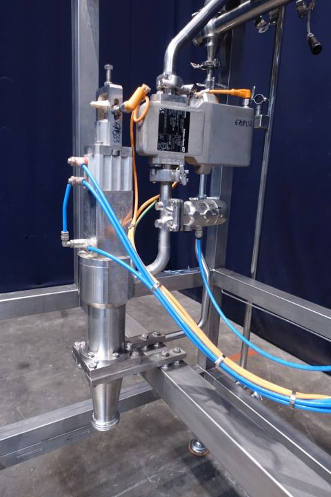 Gravity Filler, unused with 1 Head , used to fill liquid in Bucket size round: 4-10kg, 120 buckets per hour. 400V, 60Hz, 5Kw The thin liquid products go under airpressure and gravity by free flow through a flow transmitter. The volume is free adjustable 0,5-50ltr/dosing Buffertank with sensors, CIP cleanable-2 spray bowls, The conveyor for the packages is excluding only the dosing system. 2 different size filling nozzles available. Controls: Siemens model: Simatic S7-300, Siemens touch screen HMI.