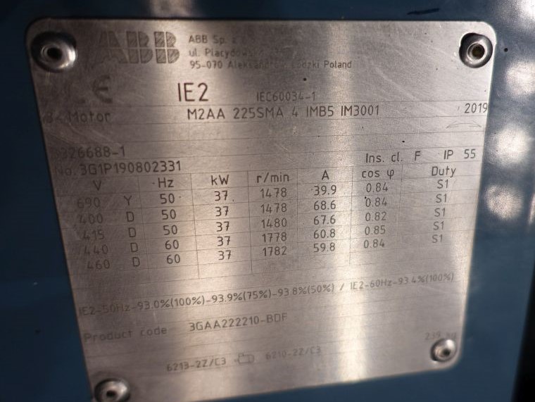 Unused Motor: 37 kW - 68,6 A - 1478 rpm - 50 Hz - 400 V.