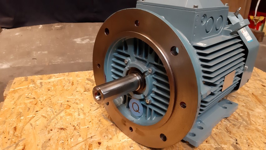 Three phase motor for a wide variety of applications; pumps, fans and process machinery drives. ABB M3AA induction 15 kW - 31,4A - 2928rpm 400V 3-phase. Shaft diamtater: 41mm Shaft length: 105mm. It has a top mount terminal box. Total dimensions: 57 x 35 x 37cm