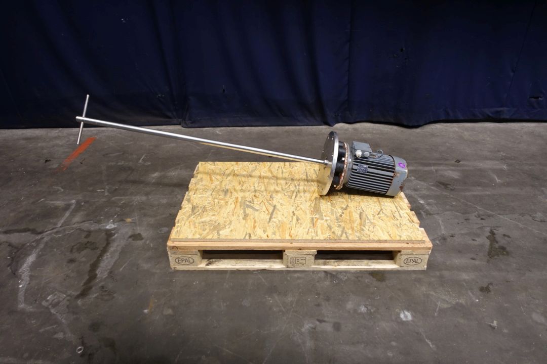 Pin agitator / mixer. Length of the shaft: 130 cm, diameter shaft: 30 mm, length pin: 26 cm, flange diameter: 35 cm. Vem motor: 50 Hz - 4,0 kW - 400 / 690 V - 5,1 A - 1440 rpm. Total dimensions: 175 x 80 x 30 cm. Weight: 98 kg.