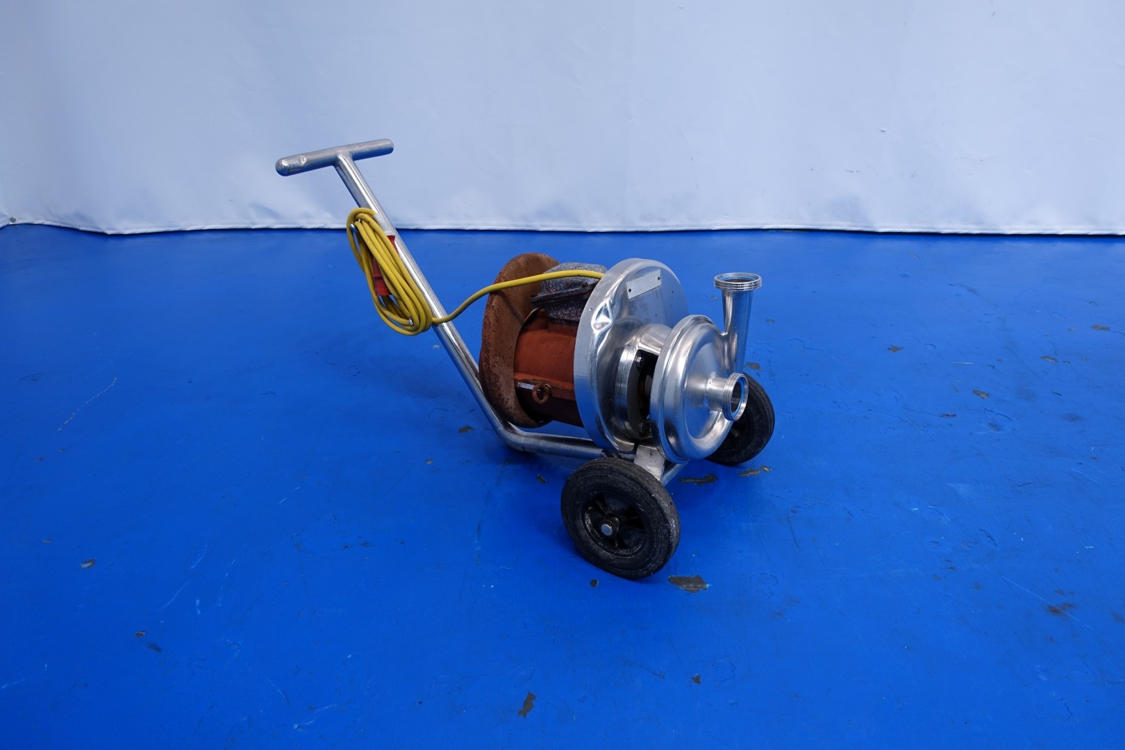 Sanitary centrifugal pump on mobile SS frame. Current motor: 3,6 kW - 7,1 A - 50 Hz - 2.875 rpm. Impellor diameter: 170 mm. Connections: (in) 2,5" Din / (out) 2,5" Din. Total dimensions: 86x44x55 (lxwxh) cm - weight: 61 kg.