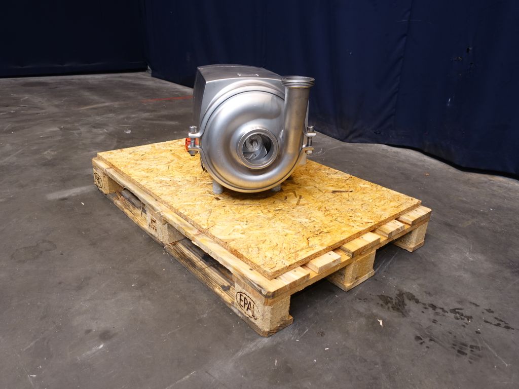 Sanitary centrifugal pump. Current motor: 7,5 kW - 13,8 A - 2930 rpm. Impellor diameter: 145 mm. Connections: DN80 / DN65, SMS.