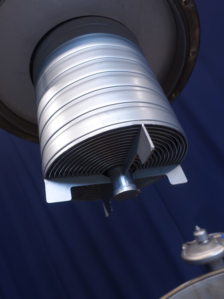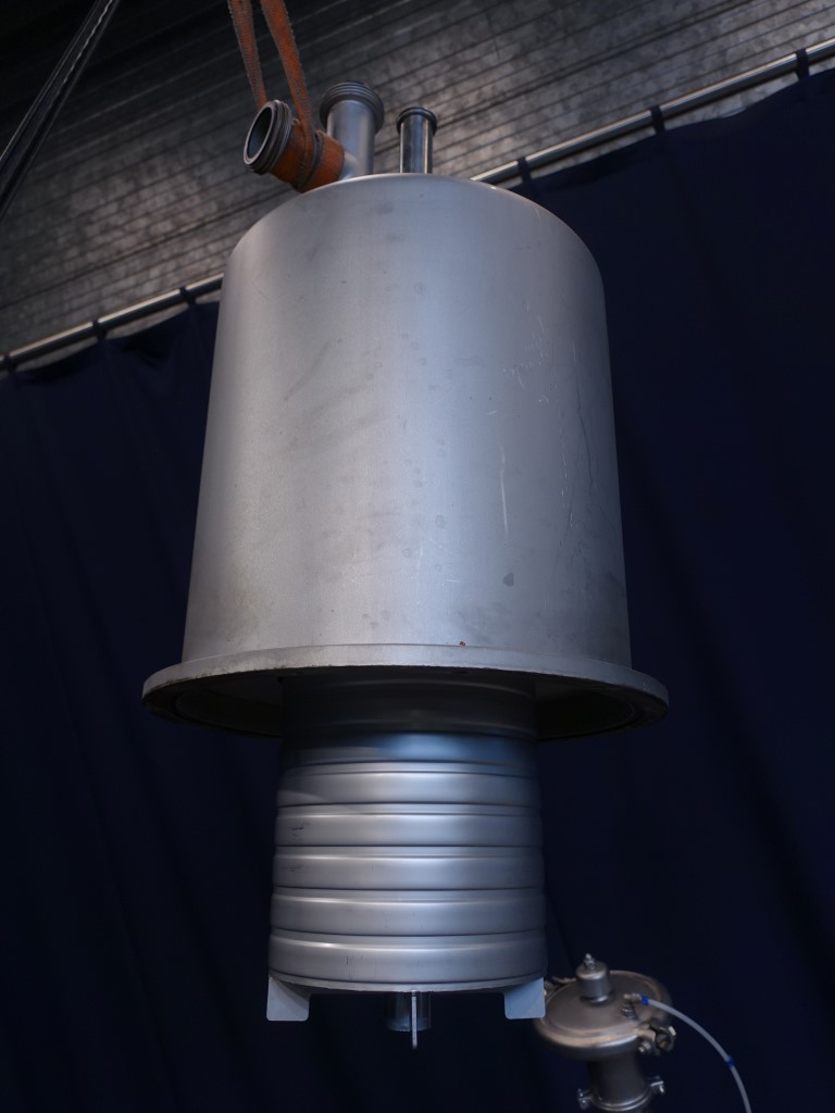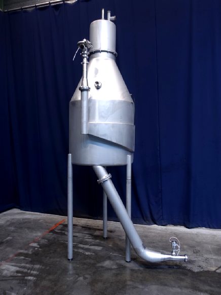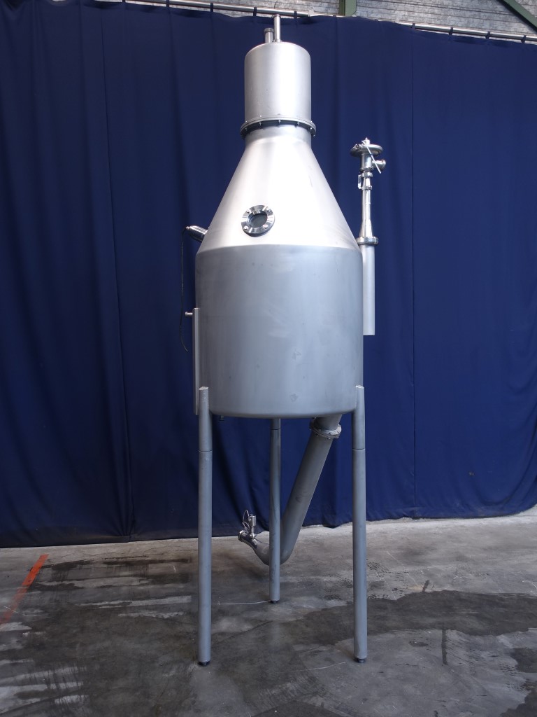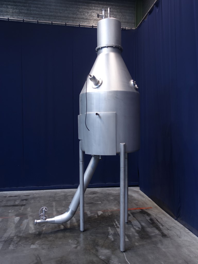 Deaeration vessel, deodorisation, evaporation and flash cooling of liquid food products with a viscosity not exceeding 500 cP. Tangitial infeed of product and partially jacketed for cooling by icewater (antifoam). Spray bowl for CIP cleaning. CPM valve on inlet. Condensor internal 6 m2. Sight glass with light. Dimensions inside, diameter 1.000 mm and height 1.100 mm. Outlet connection 2,5 '' SMS and outlet heigth: 16 cm. Total outside dimensions: 120 x 180 x 400 cm. Can be offered rebuild with pumps, valves and controls
