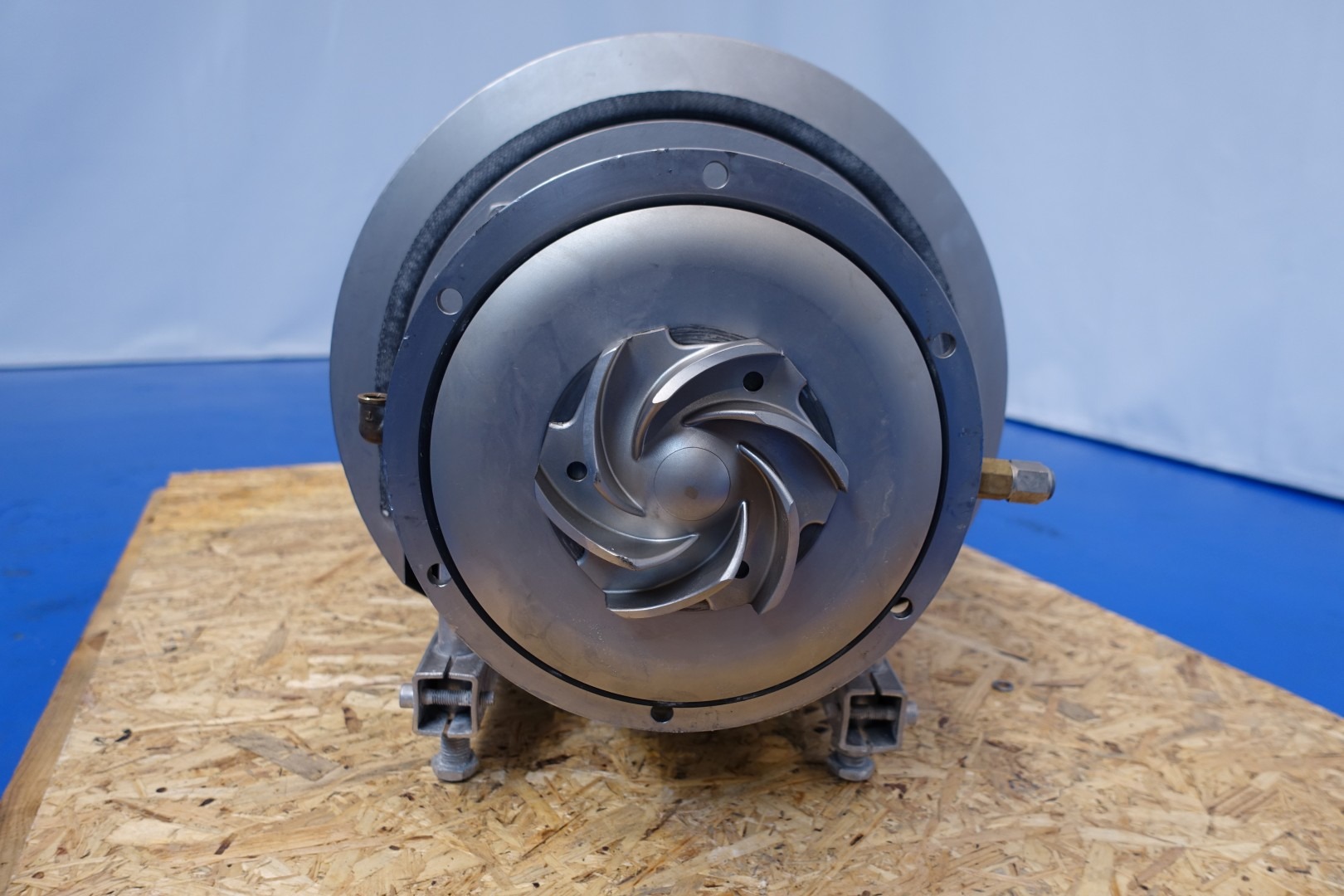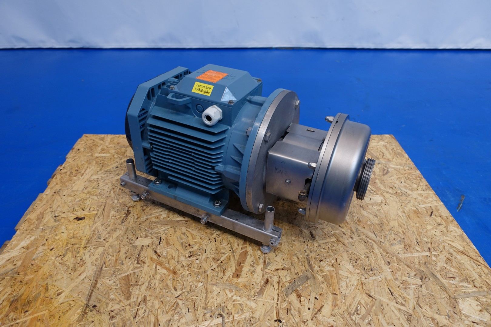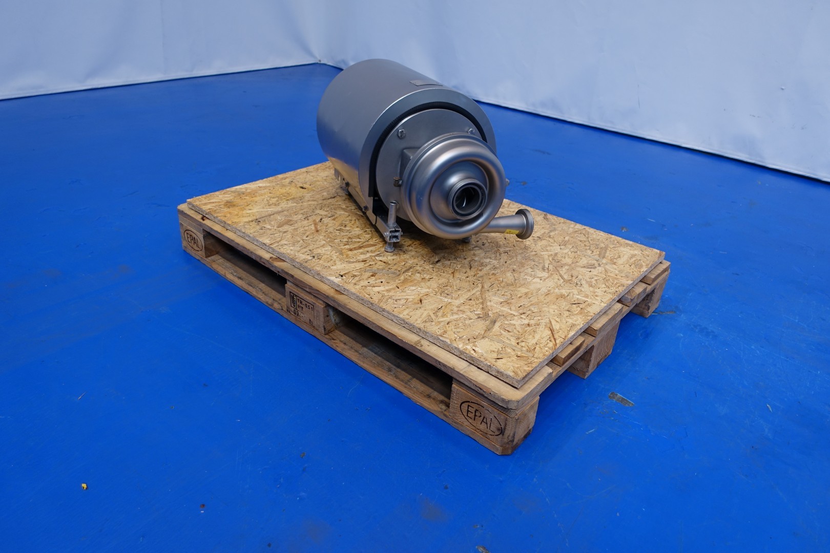 Sanitary centrifugal pump. Current motor: 7,5 kW - 14,7 A - 2.855 rpm. Impellor diameter: 120 mm. Pressure: bar. Flushed seal. Connections: (In) 2,5" / (Out) 2" DIN. Total dimensions: 66x38x39 (lxwxh) cm - weight: 115 kg.