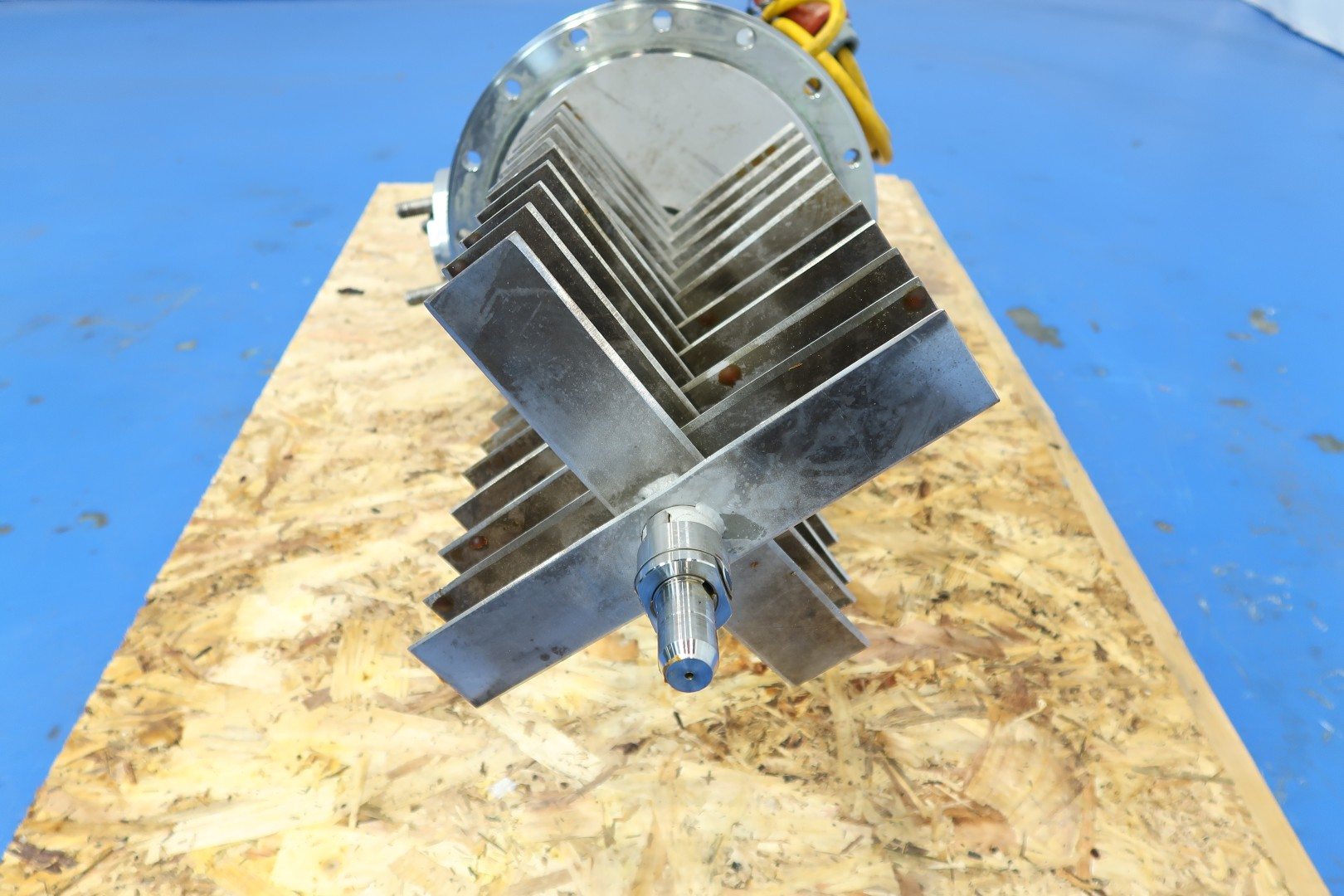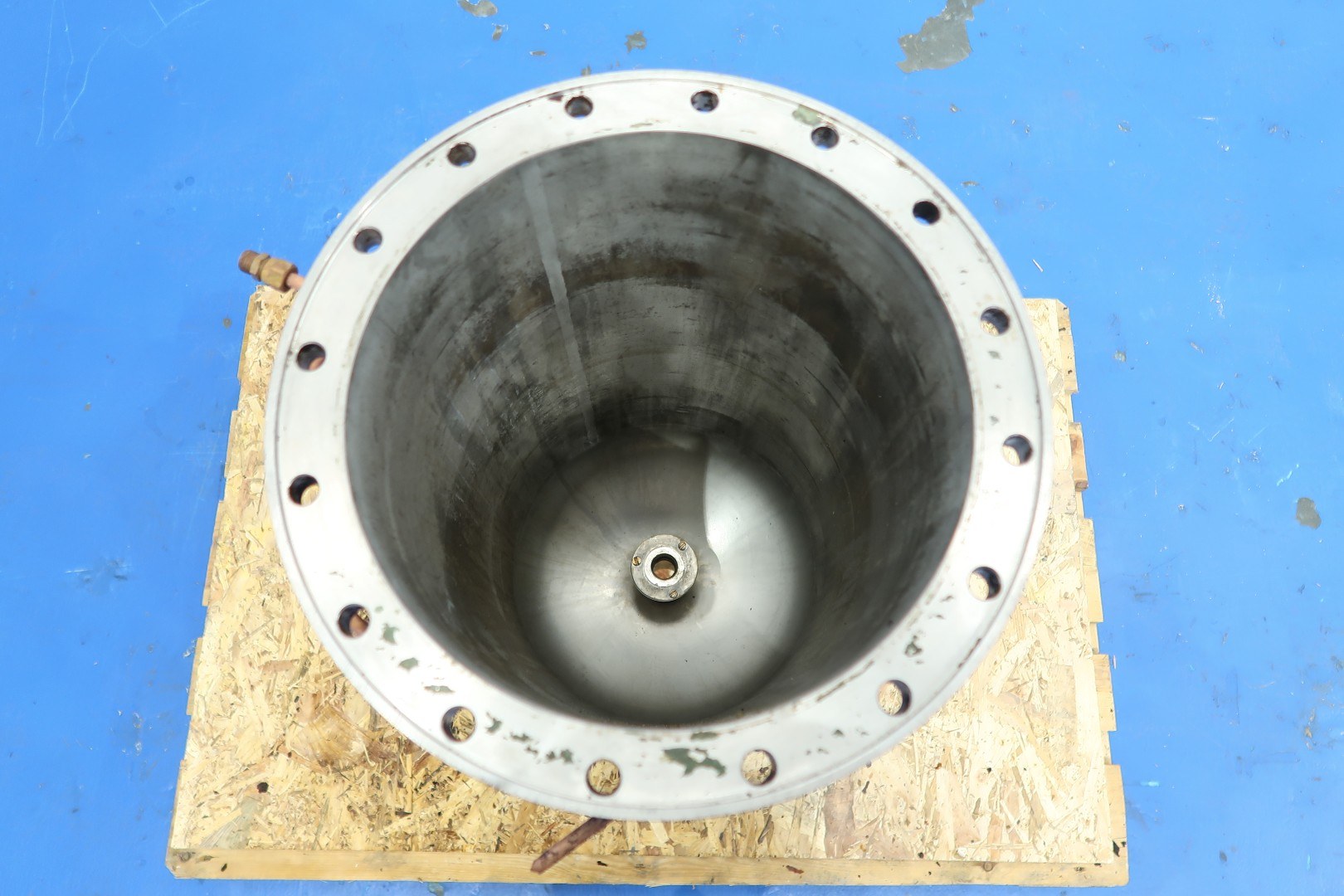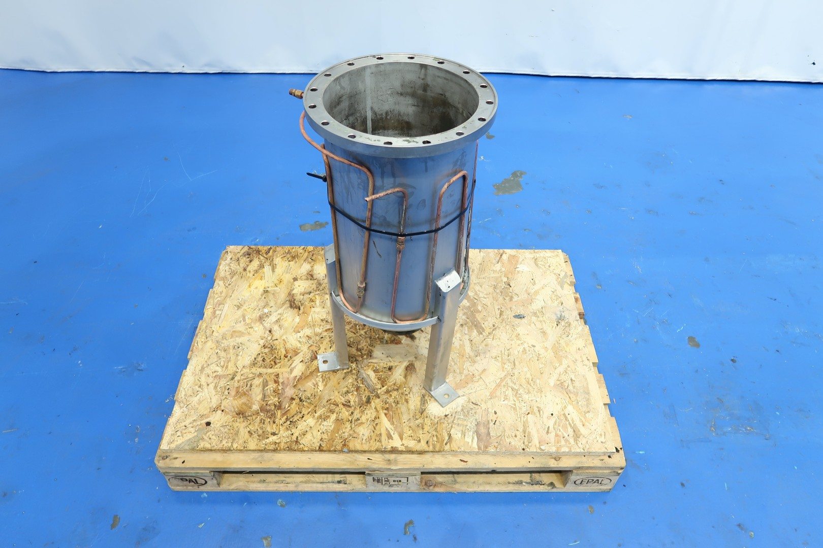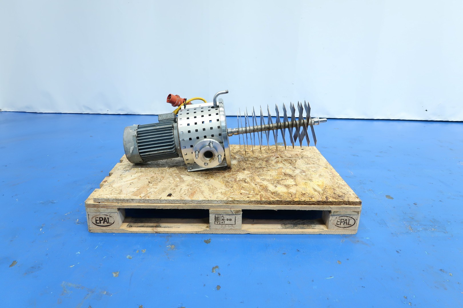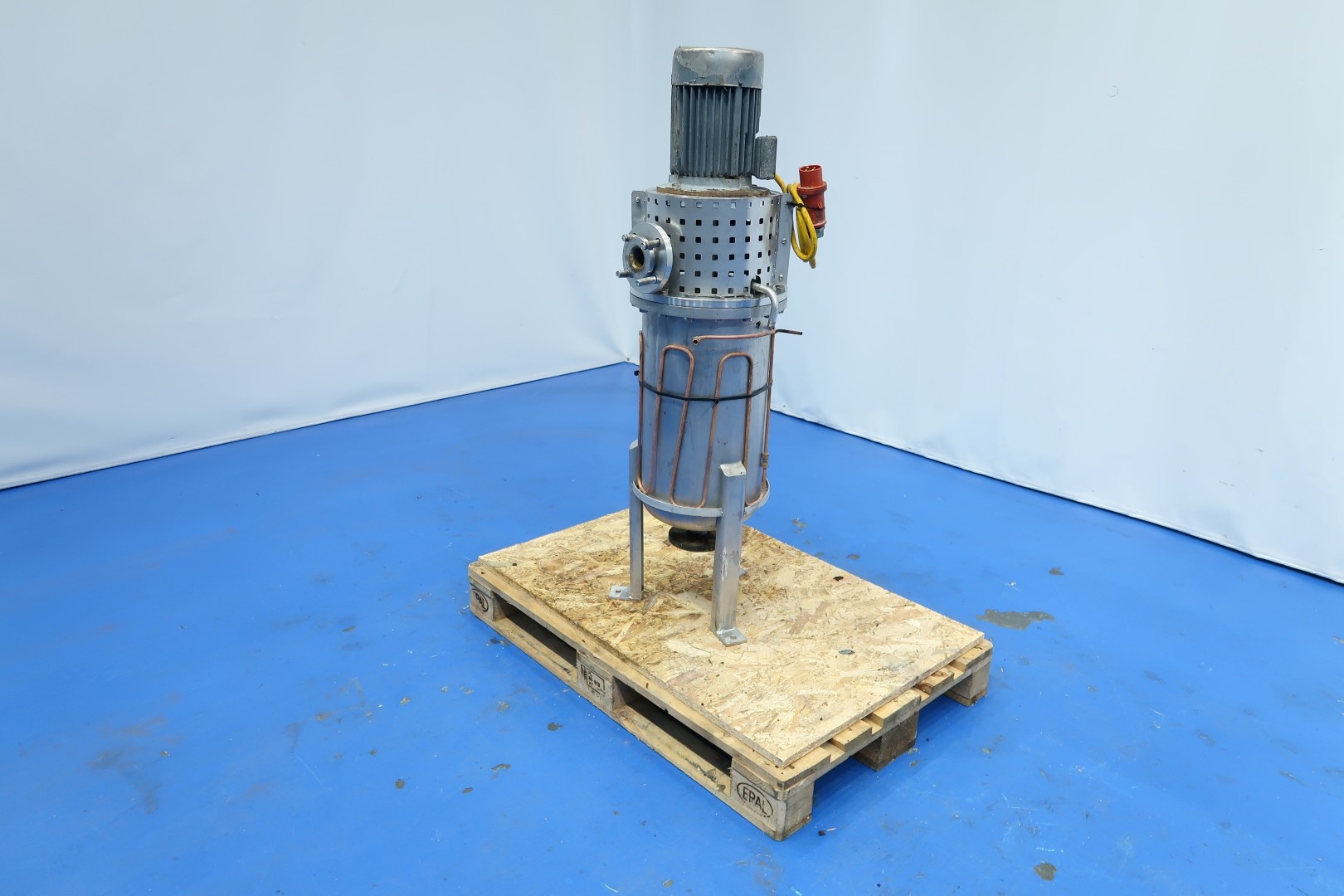 Inline mixer. Previously used as a mixer for chemicals in vegetable oil. With tracing around to keep product warm, capacity ca. 75 ltr, with 2x 20 knives. Inner dimensions; cylindrical height: 57 cm - diameter: 29 cm. Outer dimensions: 42x38x136 (lxwxh) cm - weight: 165 kg.