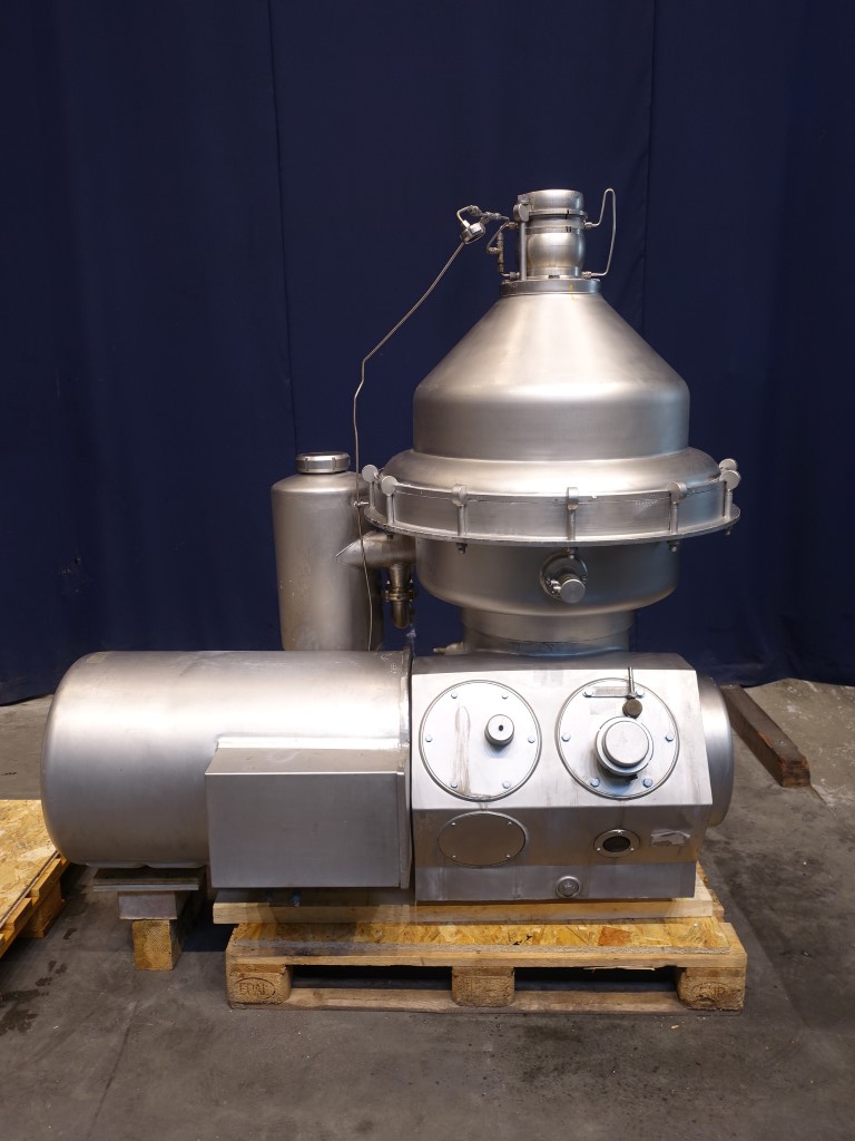 Hermetic skimmer complete with bowl, motor cover, cyclone. Motor 22 kW. Excluding: base frame, counter pressure valve milk, flowindicator, flow regulation valve for cream, OWM, set of needed tools with ring key and pressing tool and control panel.