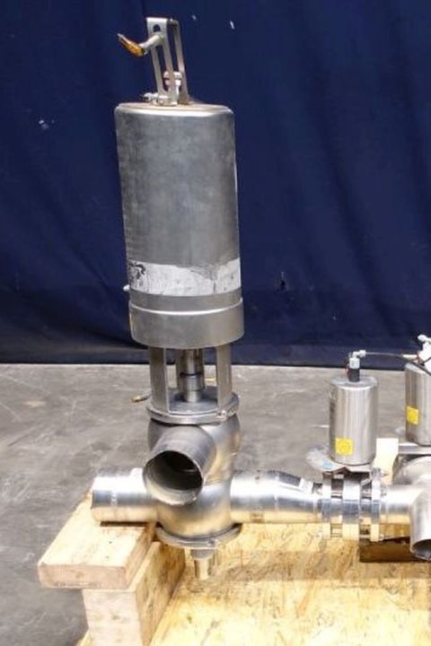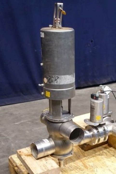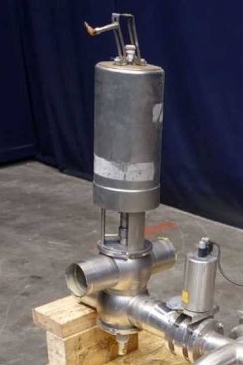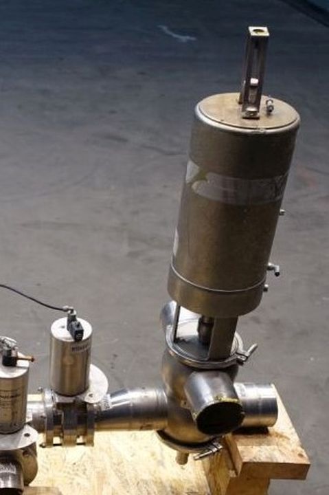 Mixproof valve with seat lift. 4-Way. Butterfly stop valve between flanges. Pneumatic activated. Diameter: 4'' Weld-Weld / 4'' Weld-Weld. Single position sensor.