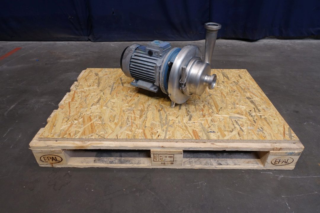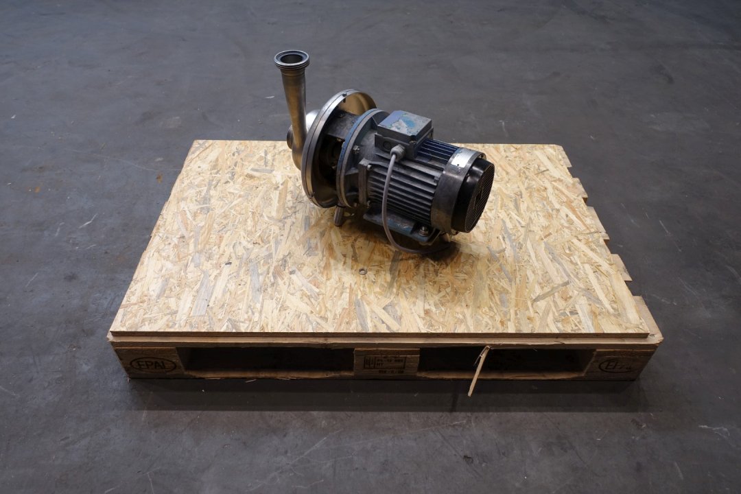 Sanitary centrifugal pump. Current ABB motor: 3,0 kW - 6,2 A - 2.800 rpm. Impellor diameter: 135 mm. Connections: (in) 2" Din / (out) 2" Din. Dimensions: 53x31x41 (lxwxh) cm, weight: 86 kg.