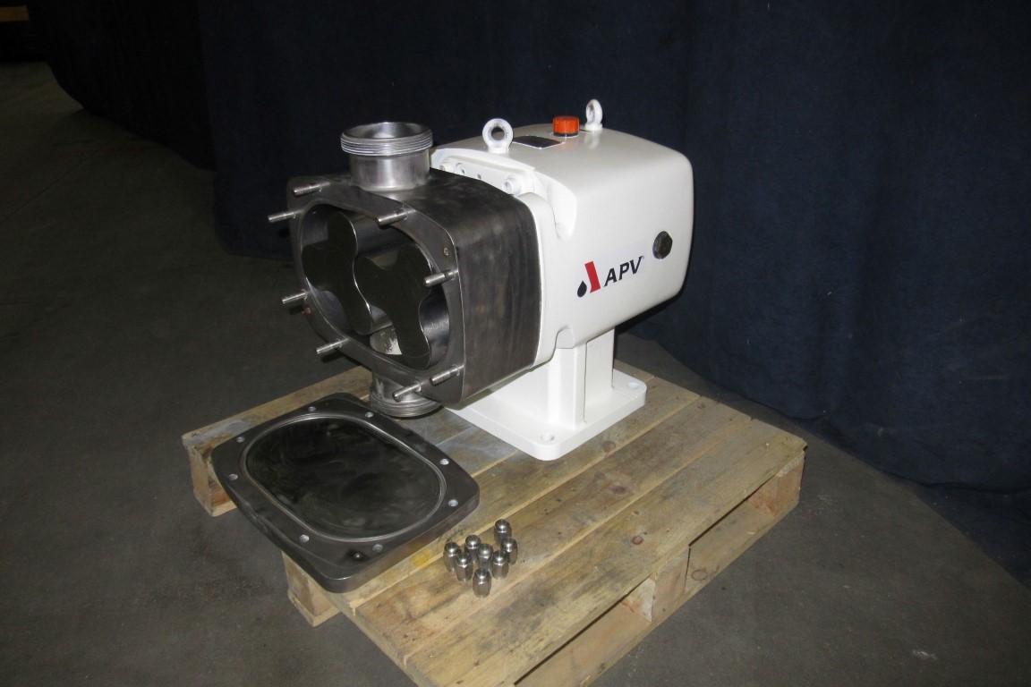 Sanitary positive displacement lobe rotary pump (without motor) for viscose products like curd / cream etc. Pump with Tri-lobe rotor of stainless steel. Connections in-/outlet 4’’. DIN11851. Maximum pressure up to 10 bar, max. 110°C. Displacement 2,92 ltr per rotation.