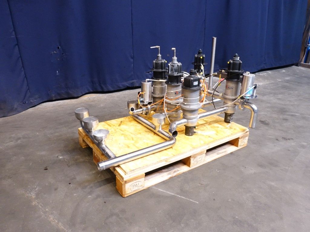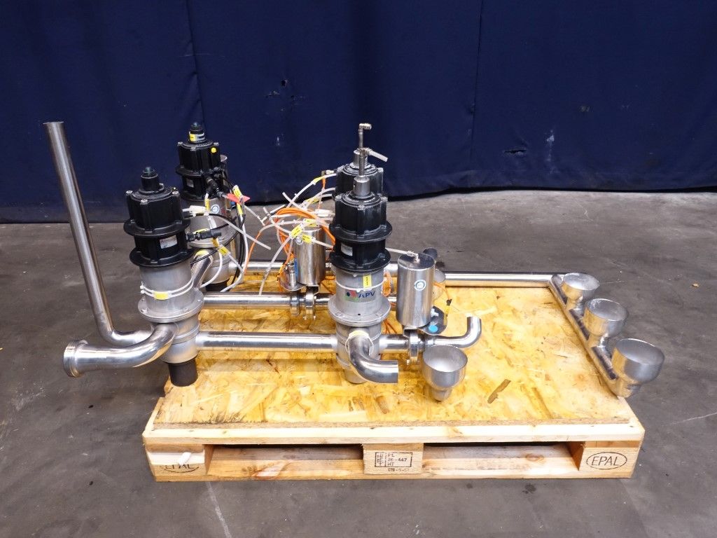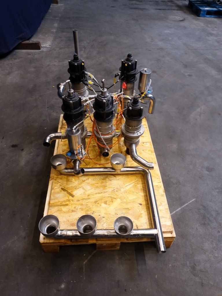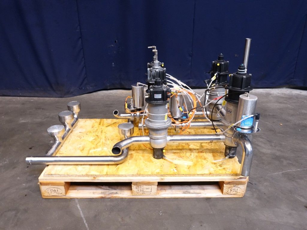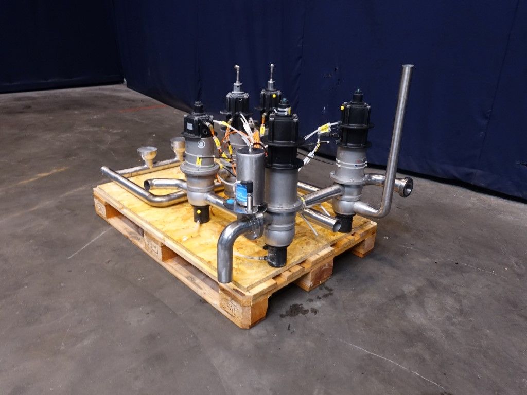 2 x DA34 2'' - 4 way mixproof double seat valves. 1 x DA34 2'' - 3 way mixproof double seat valve. 2 x D34 2'' - 4 way mixproof double seat valves. All valves welded together.