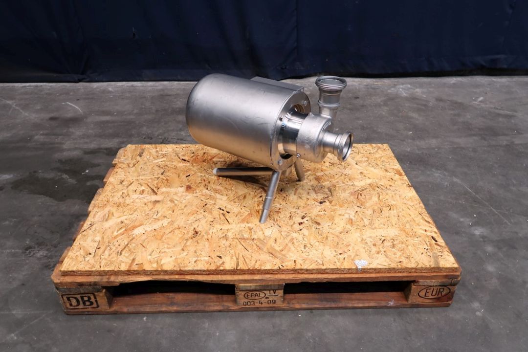 Sanitary centrifugal pump. Current motor: 4 kW - 2860 rpm. Impellor diameter: 125 mm. Pressure: bar. Connections: 2,5''/2,5''.
