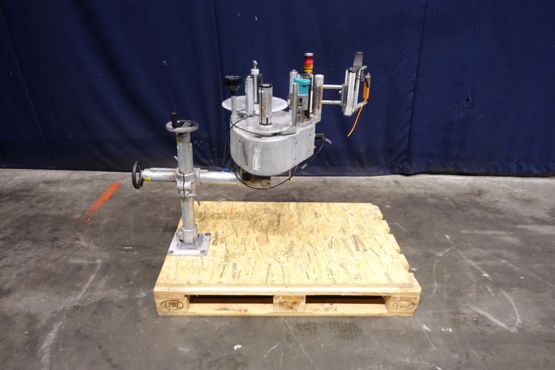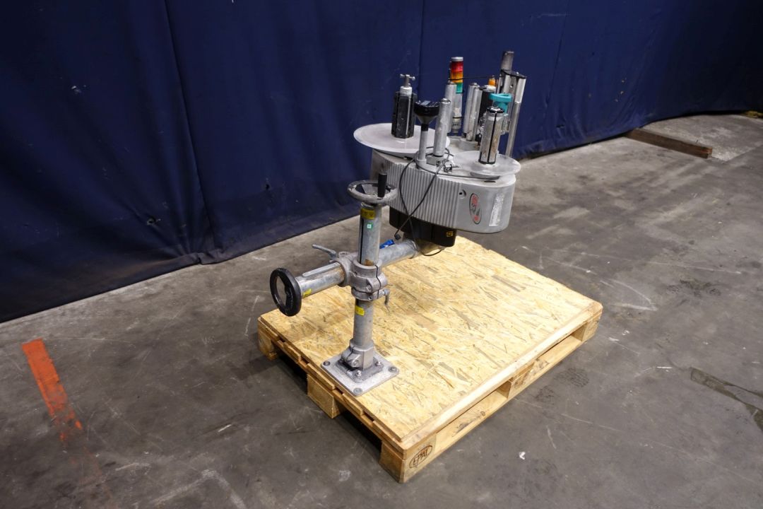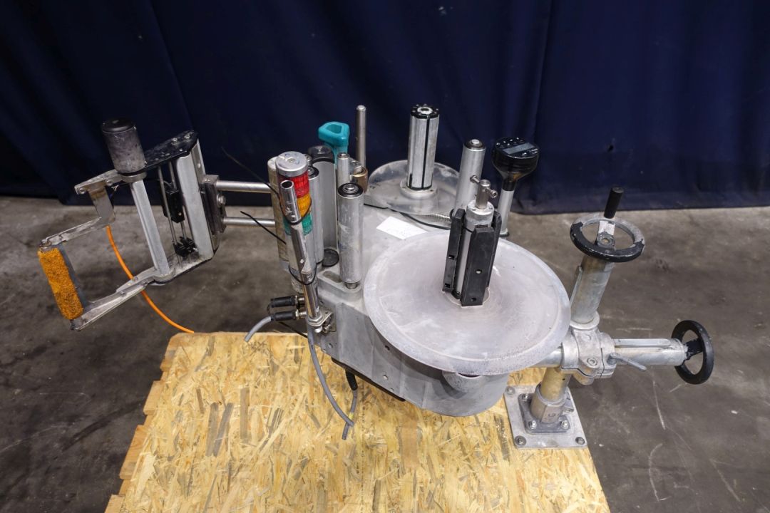 Labeling machine for selfadhesive lables. 1 Side. Has been runnig with a Miromatic MDA 2 filling machine (STN15324) and with other labeller (STN15325). Total dimensions: 120 x 80 x 115 cm. Weigth: 97 kg. Documentation available: operational manual (in German, diagrams and spare parts diagrams-list (in German).