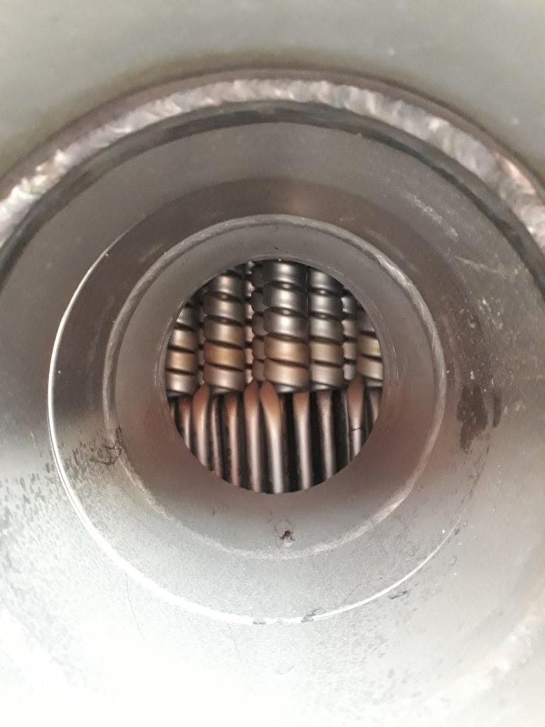 Tubular Heatexchanger Steam/Water. Multitube. Spiral design. 1 Tube. 1 Section. Length: 0,95 mtr. Outer diameter 280 mm. 42x tubes of 8 mm inner diameter. Steam section: 18 bar, 250 °C, 14 ltr. Water section: 10 bar, 120 °C, 46 ltr. Connection: product: DN32/DN50 Flange and service: DN125 Flange. Total dimensions: 60 x 80 x 210 cm.