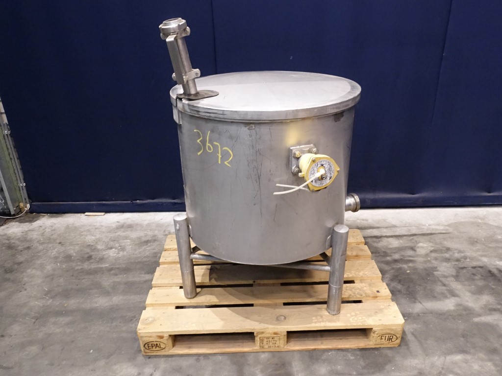 Balance tank. Open top with cover. Inner dimensions: diameter 74 cm, height 63 cm (250 L). Outlet connection: 3'', DIN, outlet height: 35 cm. Including level sensor/floater at 45 cm hegiht in tank. Inlet connection 2''. DIN. Total dimensions: 100 x 100 x 135 cm.