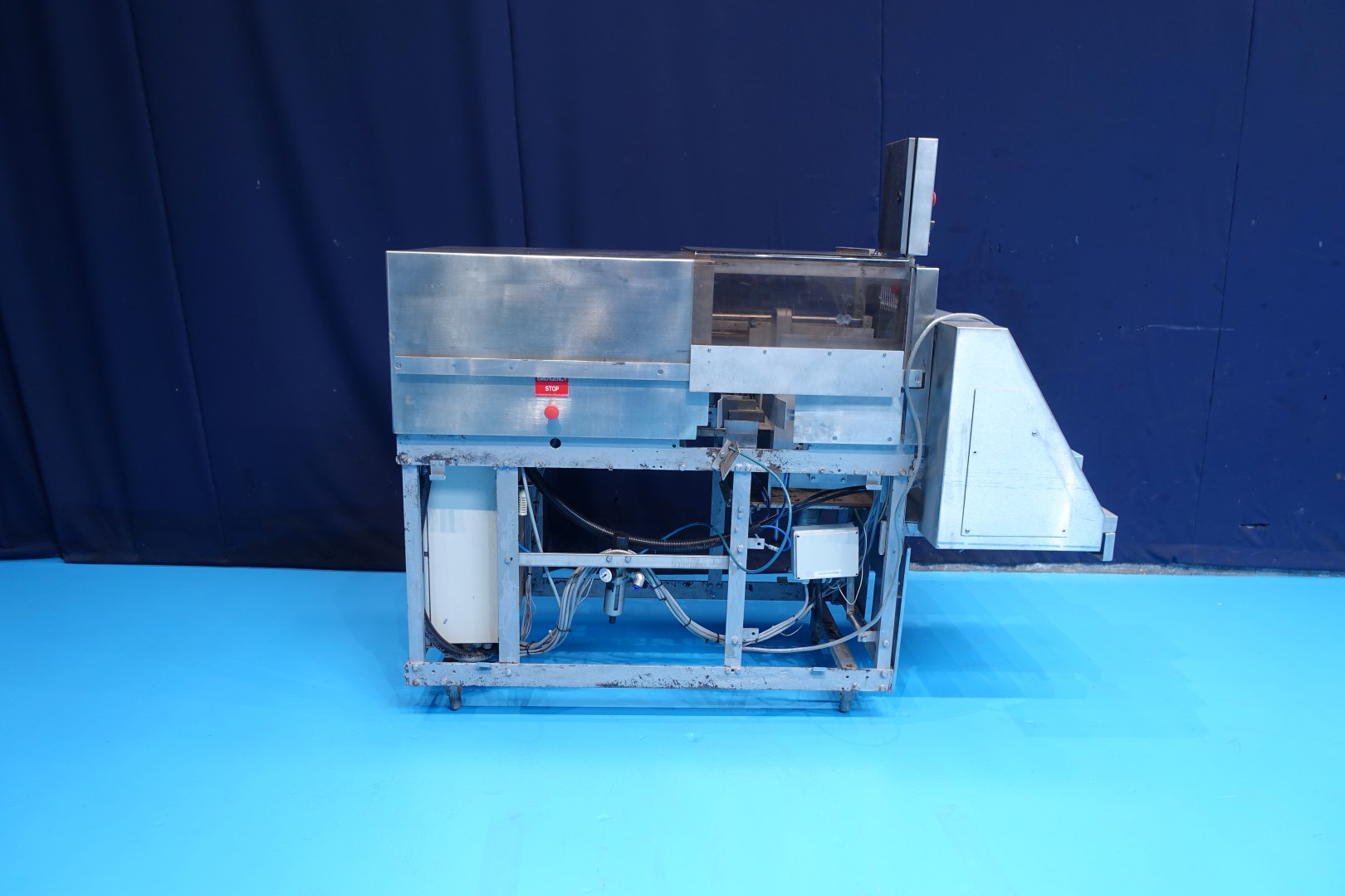 Semi automatic packer, for pefolded displays. Pneumatic controls. Filling principle: side loading. Dimensions: 207x90x172 (lxwxh) cm.