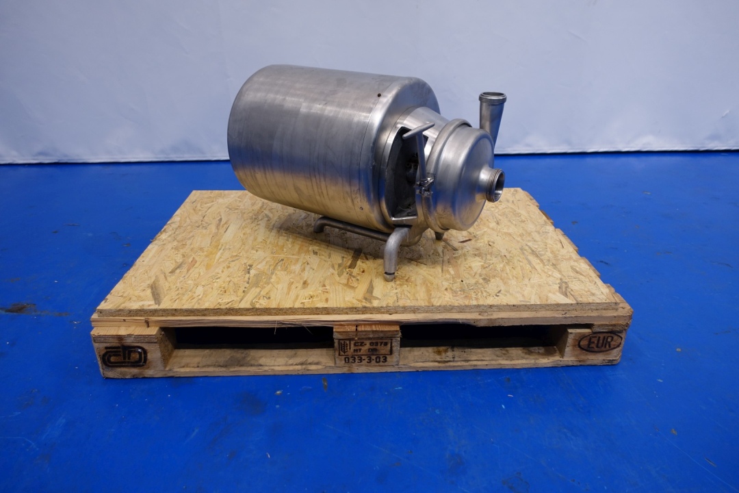 Sanitary centrifugal pump. Current motor: 5,5 kW - 11,3 A -2.880 rpm. Impellor diameter: 150 mm. Connections: (in) 3'' SMS / (out) 2,5" SMS''. Dimensions 70x37x45 (lxwxh) - weight: 113 kg. Capacity estimated