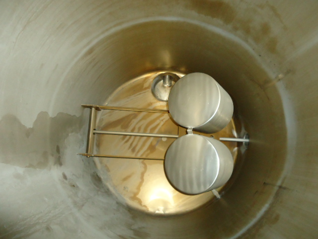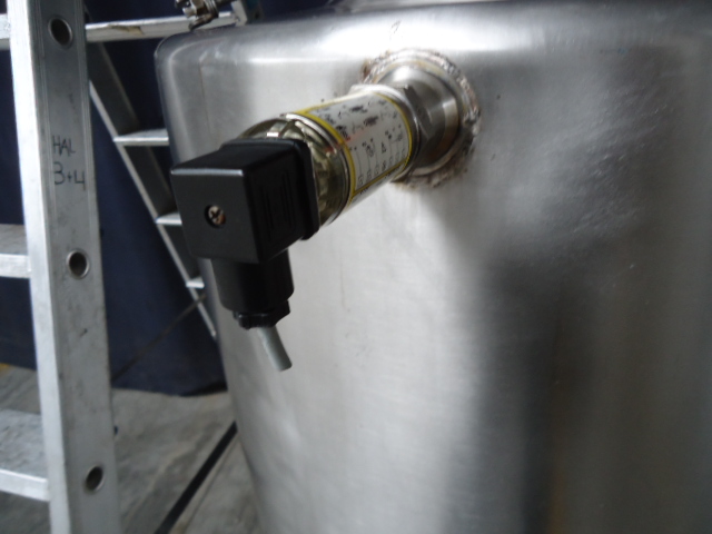 Closed level tank with high and low Solartron level sensors. Mechanical height adjustment system, double floaters. Single jacketed. Capacity of 500 liters. 1 x Cip cleaning bowl. Input 3 Inch SMS, Output 3 Inch SMS, Output height 20 cm. Closure sensor on manhole lid. With overflow output. Inner tank dimensions Ø 79 x 120 cm Total dimensions 116 x 93 x 166 cm
