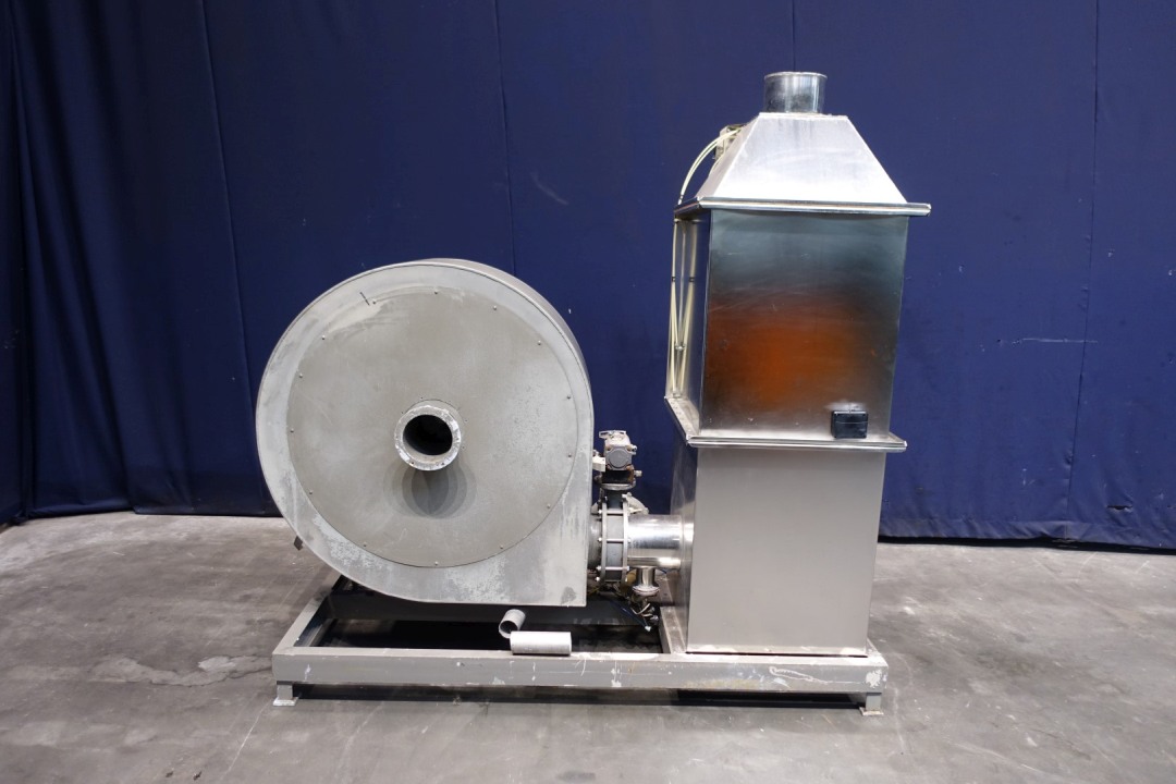 Ventilator unit Hansa blower with camfil filters. Power 10kW - speed 2.930 upm. Density 1,2 kg/m3 - temp 20 C. Flange connection 21,5 cm. With pre and hepa filter. Previously used on aseptic Combibloc machine. Dimensions: 210x110x210 (lxwxh) cm, weight: 657 kg's.
