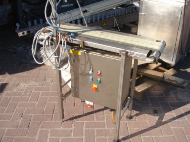 Conveyor with control panel. Length: 1,00; Width: 0,30 mtr.; Height: 0,90 mtr. Motor 0,11 kW. Speed 1,06 m/s.