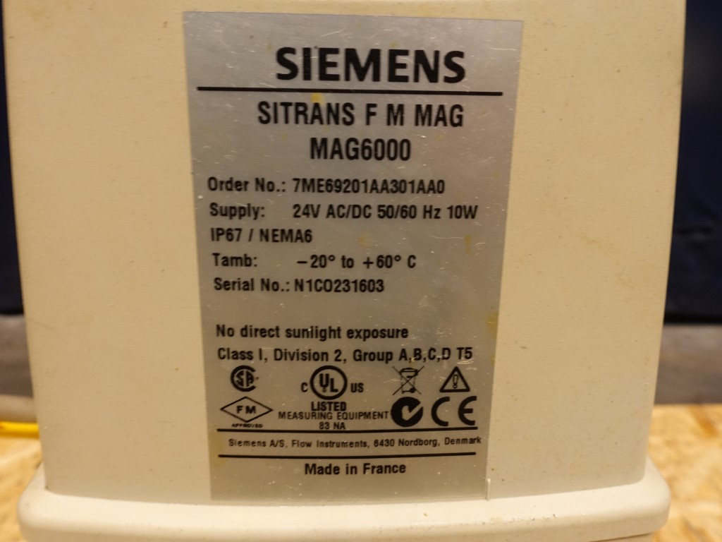 Magnetic flow transmitter MAG1100. Connections: DN50. Electronic head/display, Siemens Sitrans F M MAG 6000. Supply 24V - DC 50/60 10W.