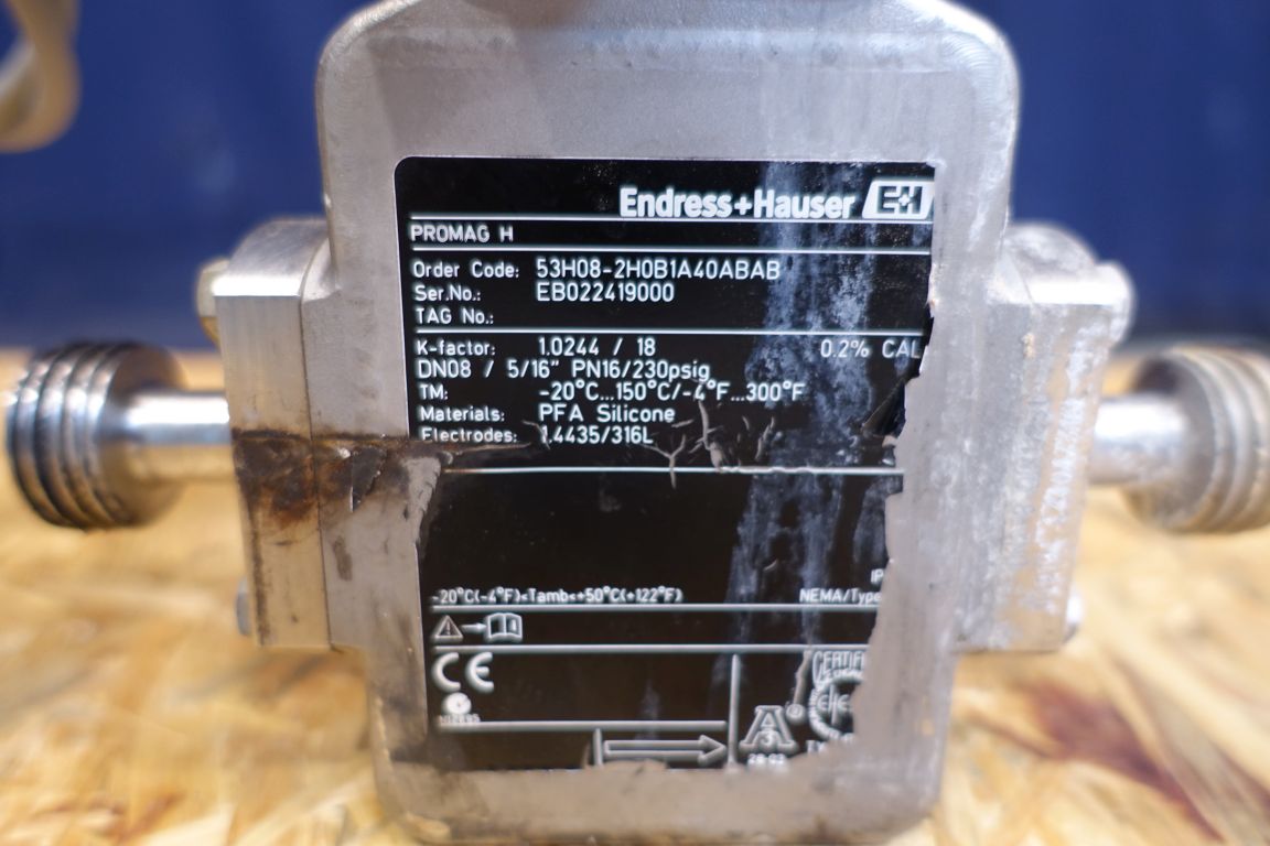 Magnetic flow transmitter. Connections: DN08/DN08, SMS. Electronic display. Endress & Hauser Promag 53.