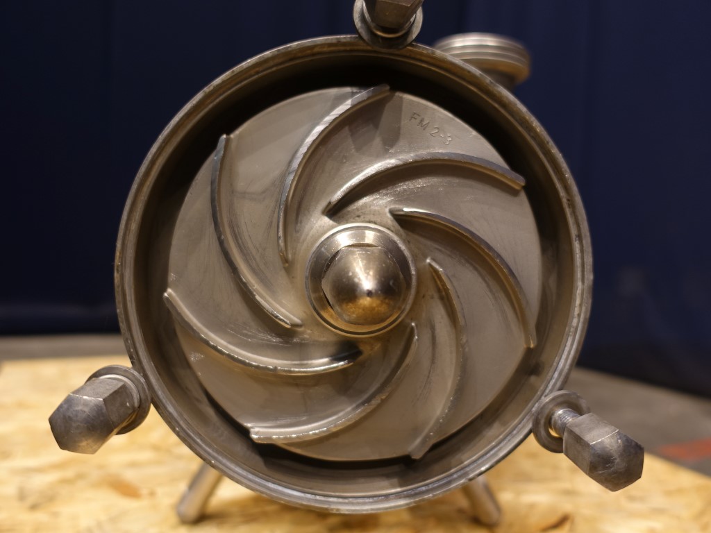 Sanitary centrifugal pump. Current motor: 12,6 kW - 20,8 A - 2915 rpm. 5 Stages. High pressure. Impellor diameter: 160 mm. Flushed seal. Connections: 2,5'' / 2'', SMS.