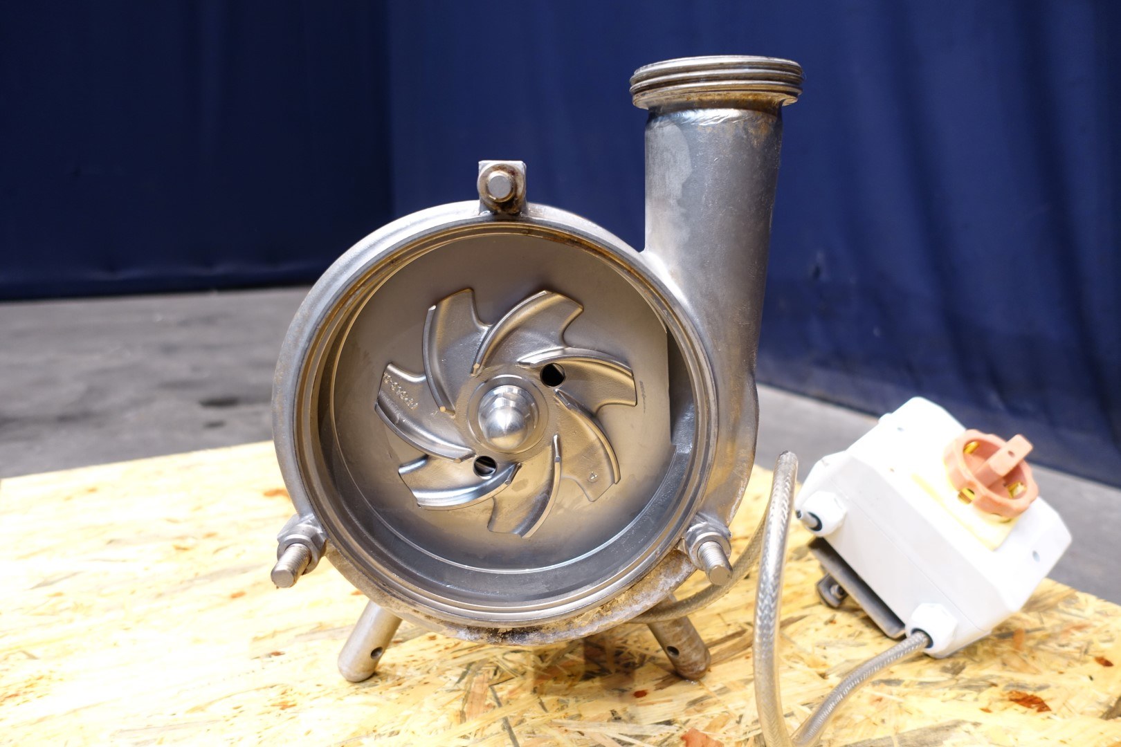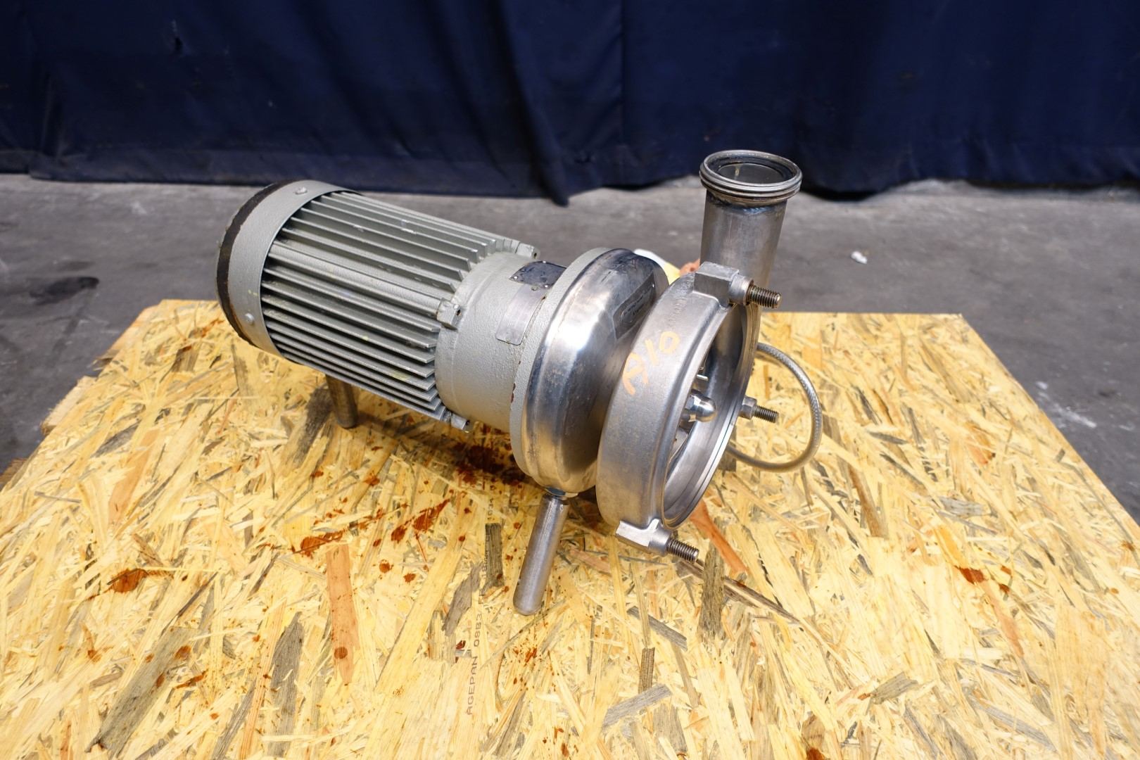 Sanitary centrifugal pump. Motor: 3,0 kW - 6,9 A - 2.860 rpm - 50 Hz. Impellor diameter: 125 mm approx 2bar. Connections: (in) 3,0" Din / (out) 2,5" Din.