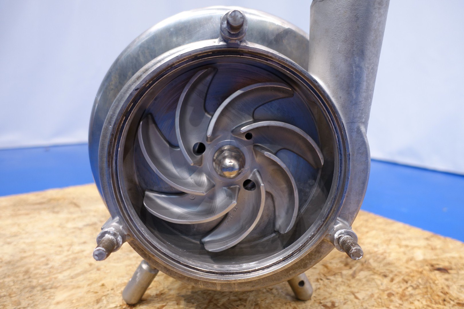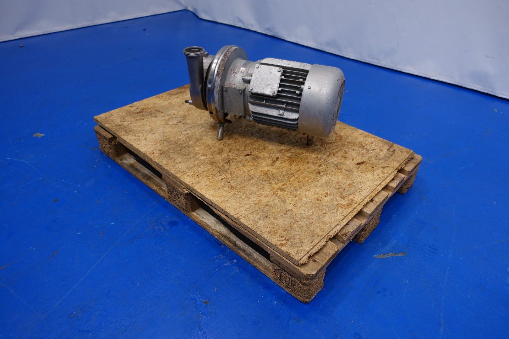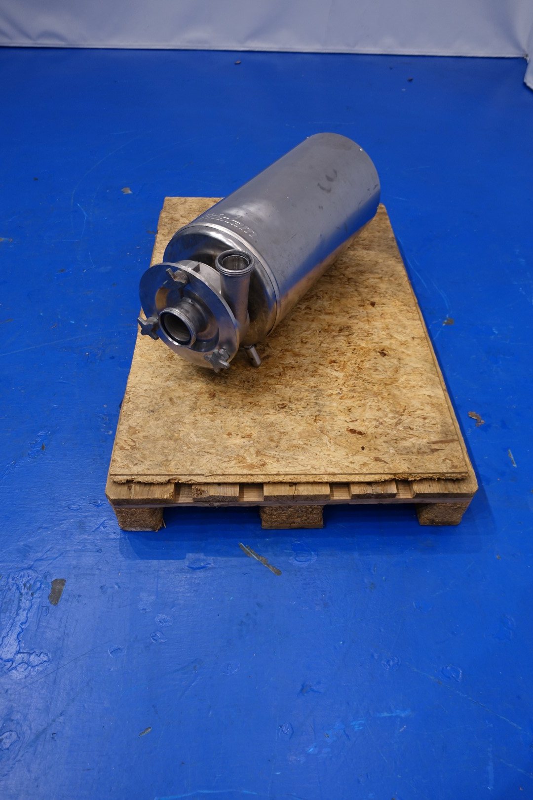 Sanitary centrifugal pump. Current motor: 7,5 kW - 15,0 A - 2.880 rpm. Impellor diameter: 175 mm. Connections: (In) 3" Din / (Out) 2,5" Din. Total dimensions: 75x30x36 (lxwxh) cm - weight: 112 kg.