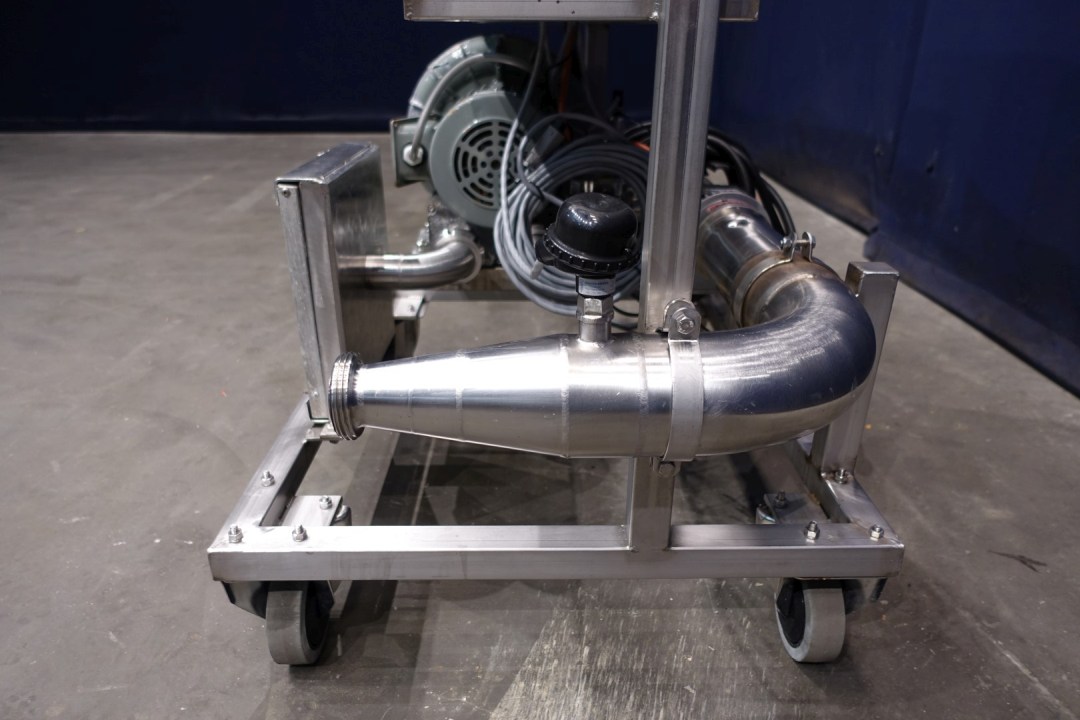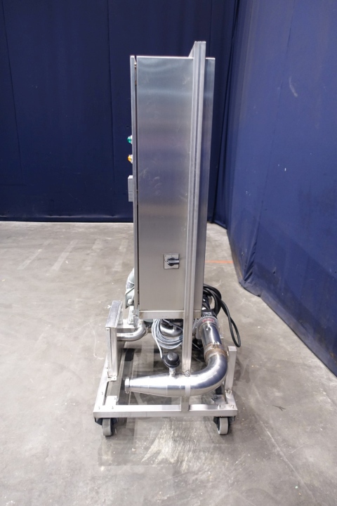 Hot air blower or mobile sterile air unit. Air blower with filter and electric air heater on SS mobile frame. Can produce hot sterile air. Built on control panel. Blower motor: 1,3 kW - 2,7 A - 50 Hz. With Leister air-heater: 3 x 22 A - 15 kW. Connections: 2 x 2" SMS. Total dimensions: 100x70x176 (lxwxh) cm, weight: 168 kg.