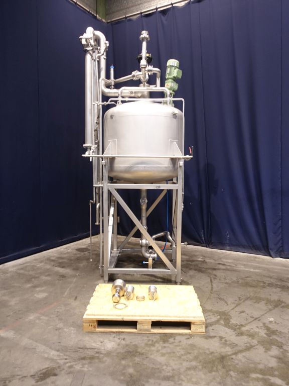 Vacuum deaertor for sauzes or viscose products volume of tank 1.140 liter - pressure: -1 / + 0,99 bar) and control panel (incomplete) for dearator system. Total dimensions 195 x 153 x 364 cm. Total weight: 1.800 kg.