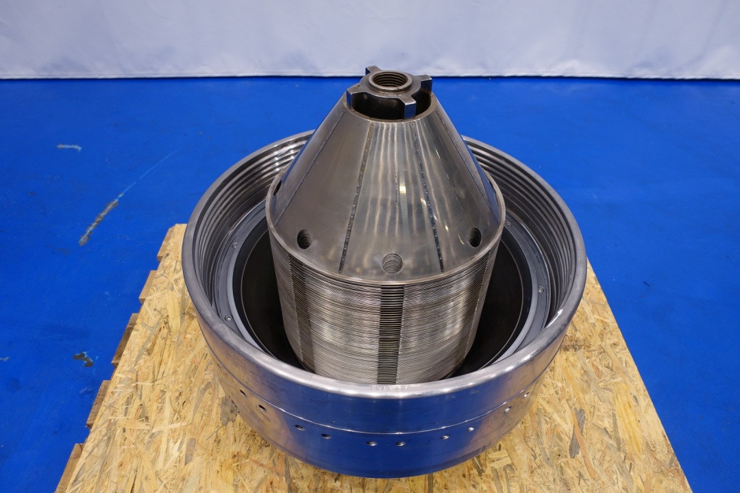 Milk or whey clarifier, self cleaning. Including bowl, bowl speed: 4.700 rpm, motor cover, feet, collecting tank, pneumatic pressure valve milk/whey, manouvering water valves. Motor 37 kW - 72 A. Set of needed tools with ring key. Excluded: base frame and pressing tool. Documentation: operating manual and spare parts list (in German) available. Total dimensions: 200x110x174 (lxwxh) cm - total weight: 2.549 kg's (all parts).