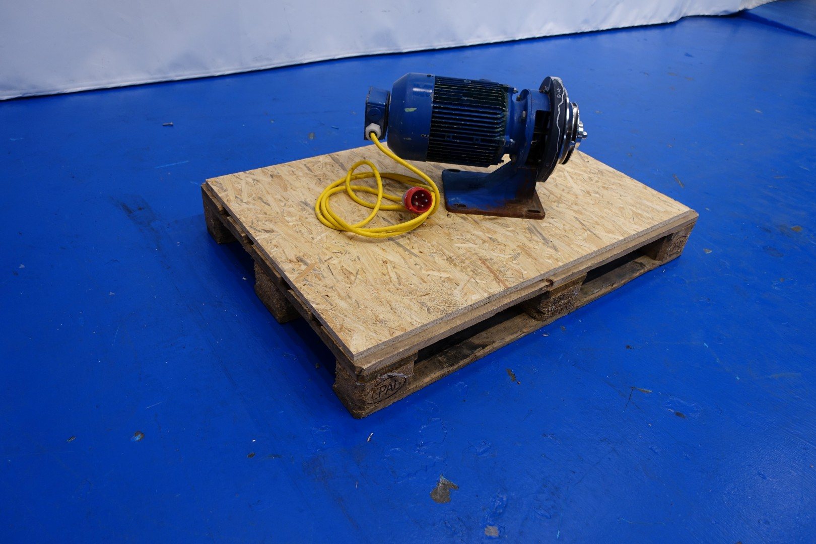 Sanitary centrifugal pump. Current motor: 4,0 kW - 7,9 A - 50 Hz - 2.895 rpm. Impellor diameter: 160 mm. Connections: (In) 2,5" Din / (Out) 2,5" Din. In working condition. Total dimensions: 63x28x38 (lxwxh) cm - weight: 85 kg.
