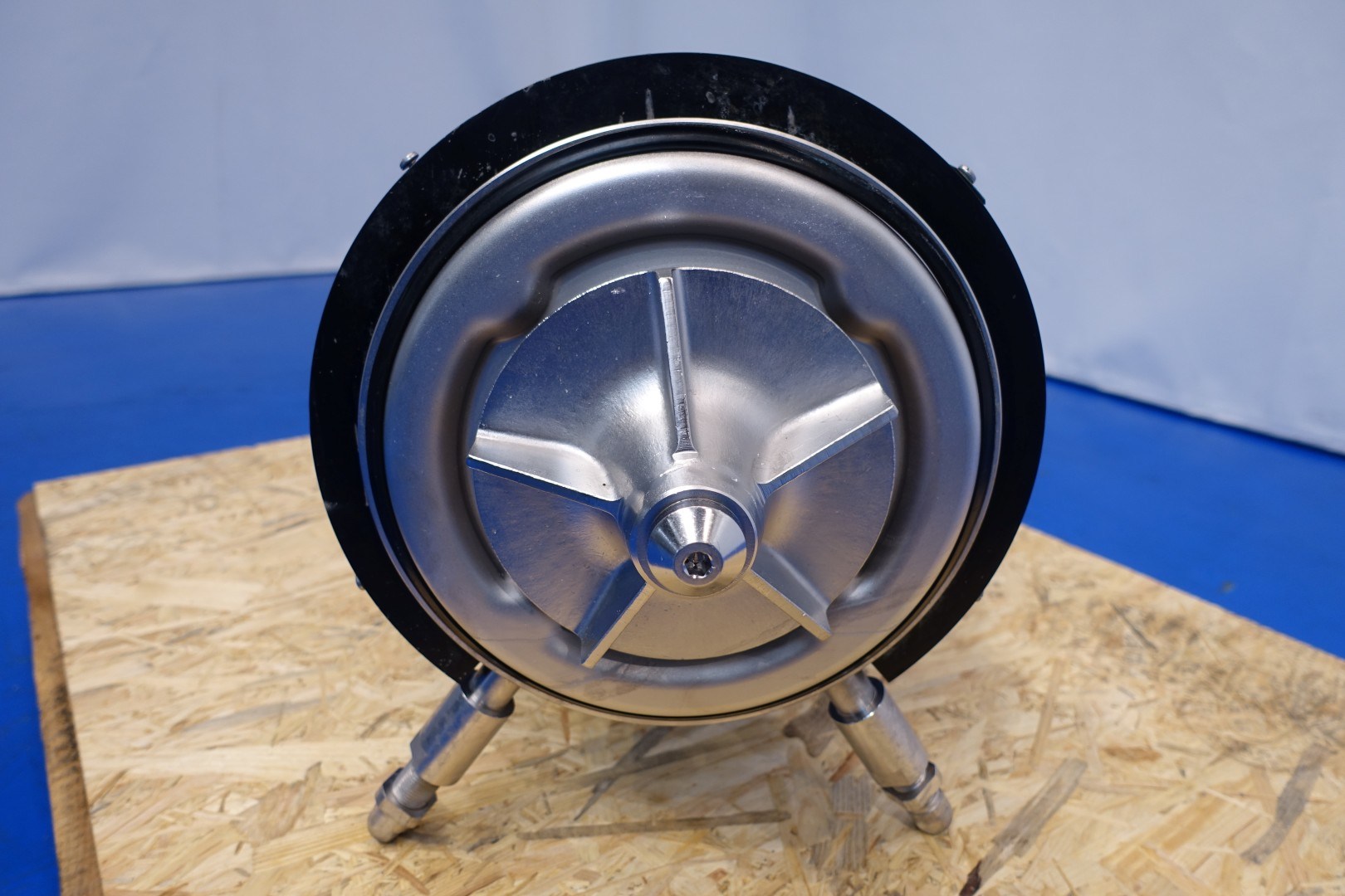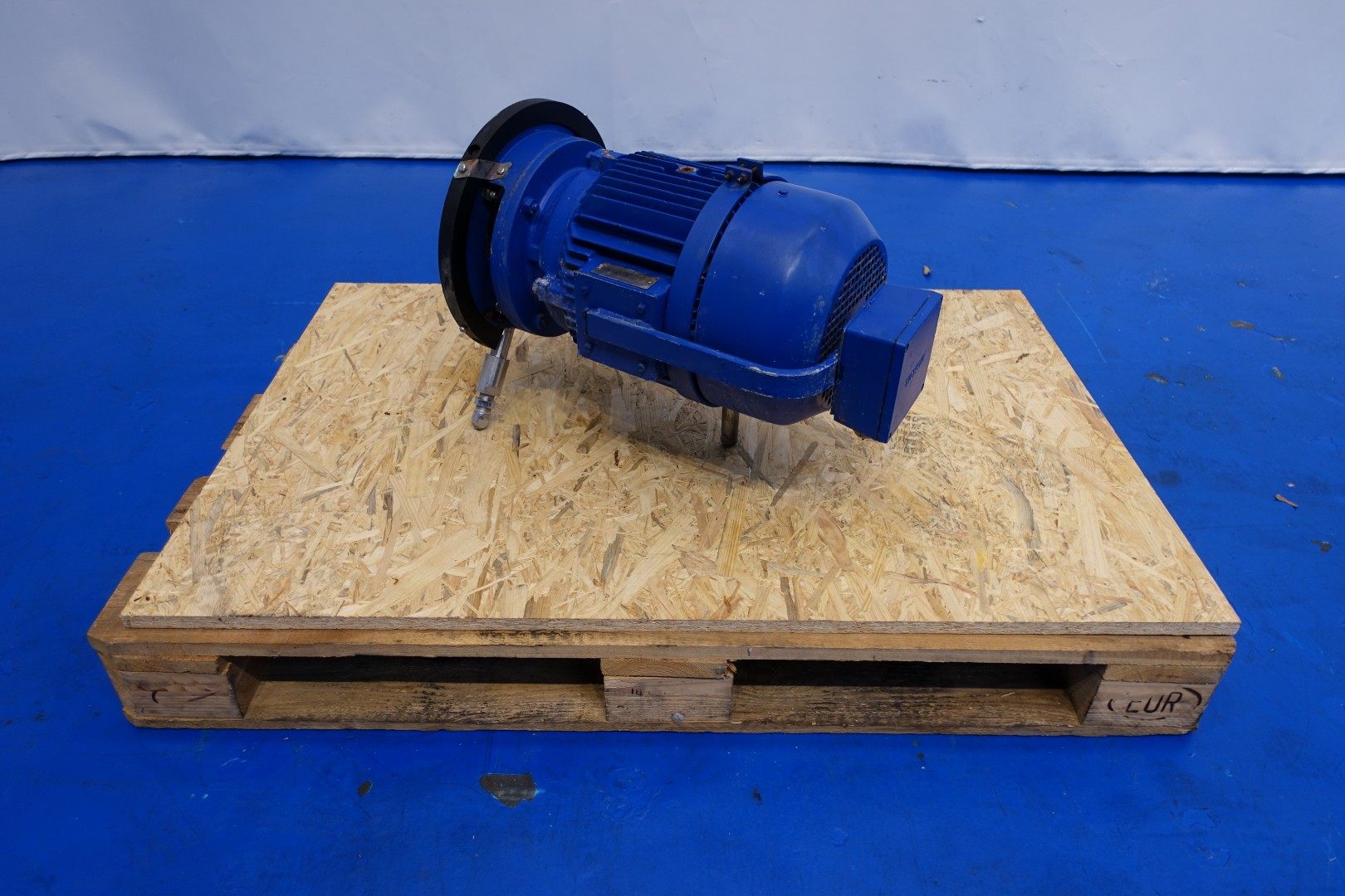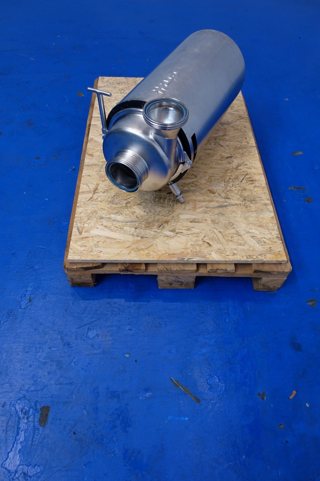 Special design Curd transfer pump. Centrifugal pump, high volume low pressure. Current motor: 5,5 kW - 11,7 A - 50 Hz - 1.450 rpm. Impellor diameter: 165 mm. Connections (in): 120 mm Din / (out) 115 mm Din. Total dimensions: 80x33x42 (lxwxh) cm - weight 110 kg.