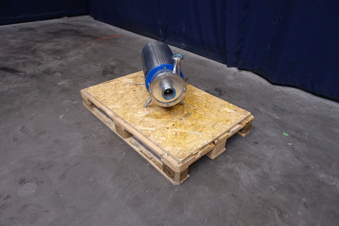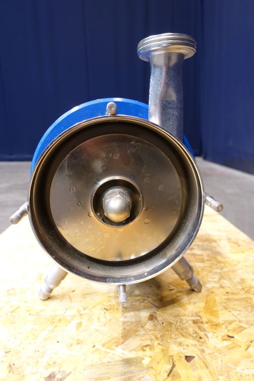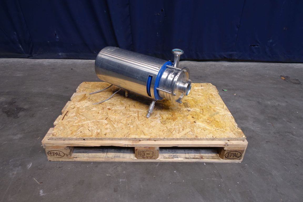 Sanitary centrifugal pump. Current motor: 5,5 kW - 10,5 A - 2855 rpm. 2 Stages. High pressure. Impellor diameter: 170 mm. Pressure: 6,8 bar. Connections: 2,5'' / 2'', DIN.
