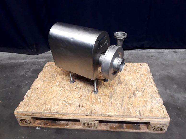 Sanitary centrifugal pump. Current motor: 4 kW - 7,41 A - 2910 rpm. Impellor diameter: 145 mm. Pressure: 2 bar. Connections: DN 80 / 3''.