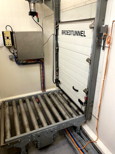 Incubatin tunnel for Euro pallets of 80cm width. Including rolling conveyors, position sensors, light, insulated panels and transport motors. 2 (inlet and outlet) electric heated with a temperature of 30/40°C with air circulation blowers. Heating 4 x 6 kW, 2 fans 220V.