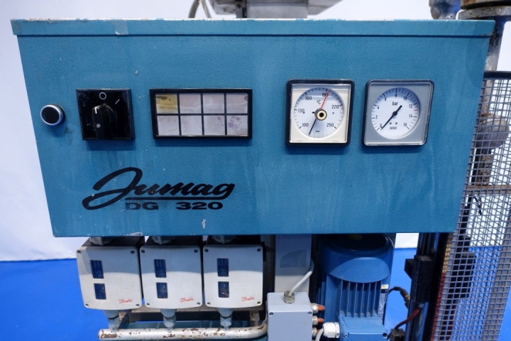 Steam generator - oil fired. Compact quick steam boiler. Volume 45L - max operating pressure: 13 bar - steam output up to 320 kg/h - heat output max 218 kW - working pressure 6-11 bar - heating time approx 8 min. With Grundfoss waterpump and Weishaupt WL30Z-C burner (capacity min 72 - max 330 kW). Total dimensions: 170x83x188 (lxwxh) - weight: 693 kg.