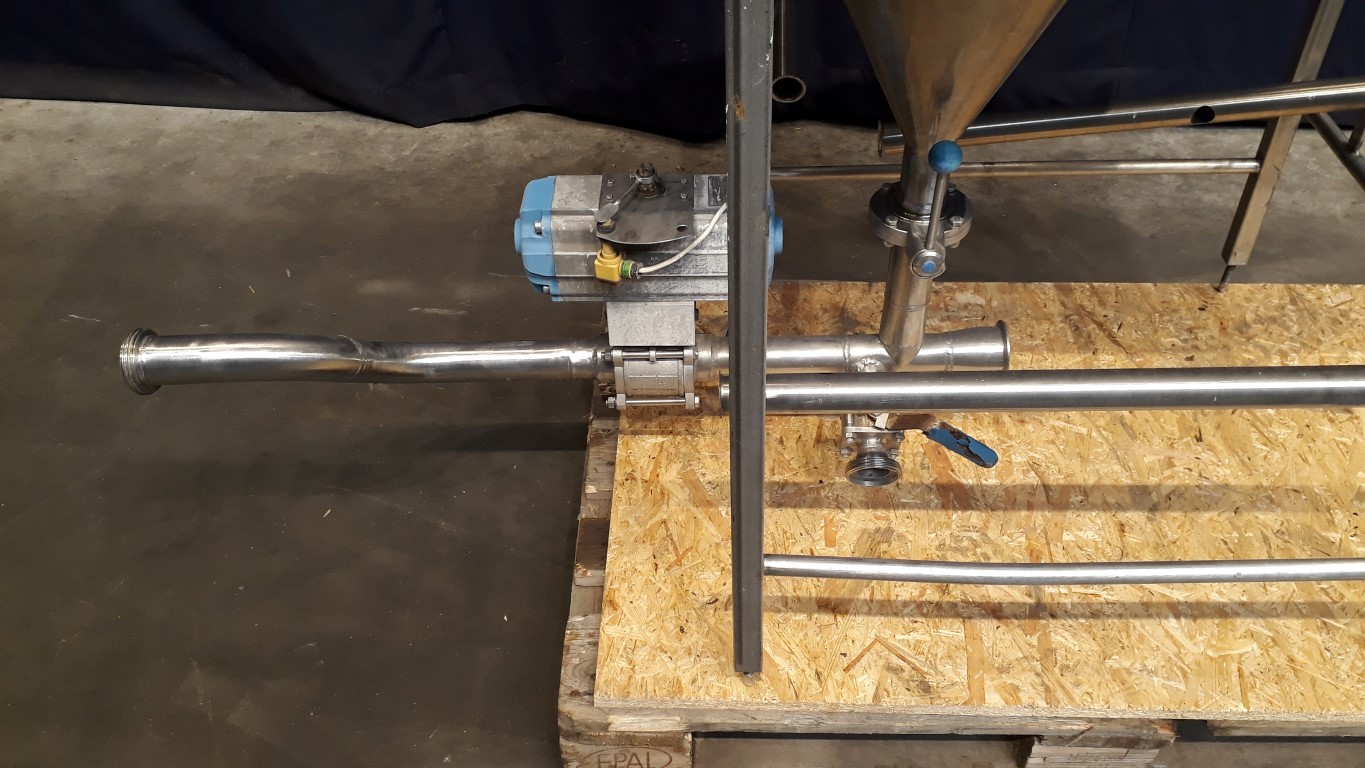 Powder dissolving tablet. Stainless steel table of 100 x 75 cm. Hopper: ± 35 liter. With valve for water, without pump. Total dimensions: 85 x 150 x 100 cm.