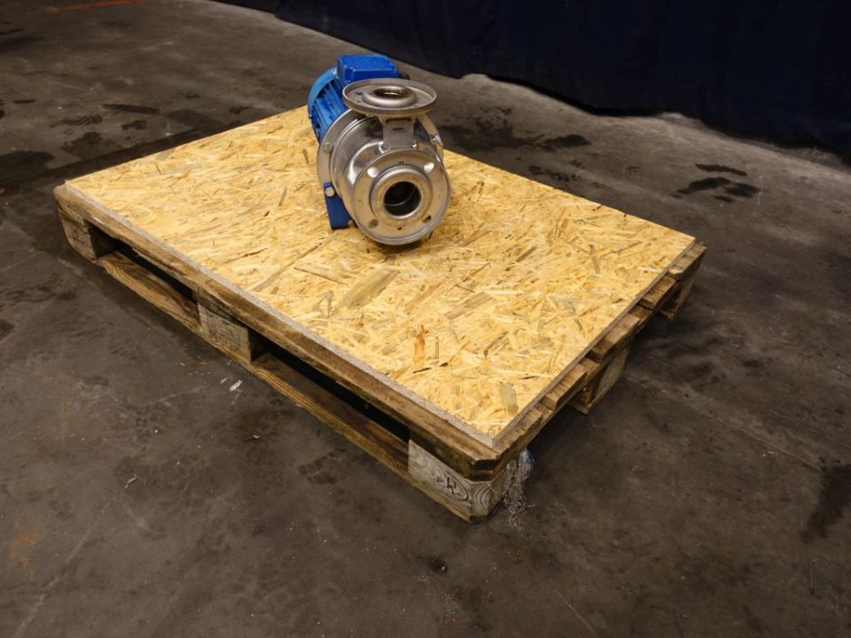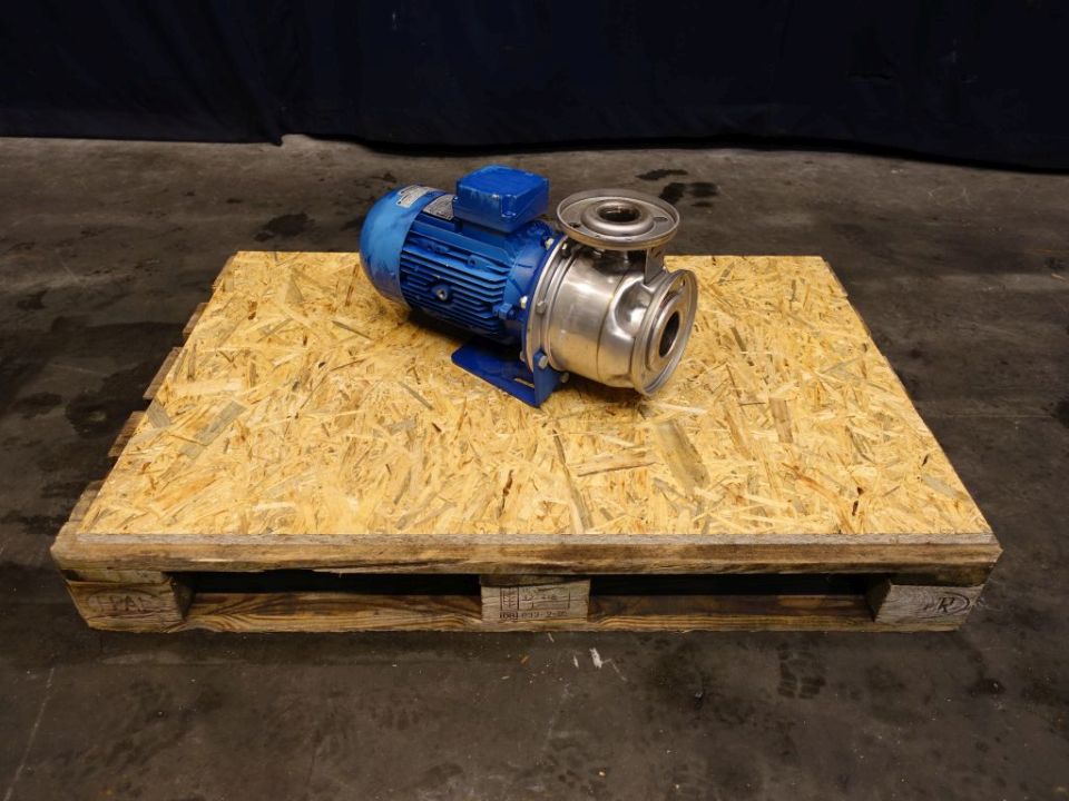 Waterpump. Non sanitary centrifugal pump. Current motor: 4 kW - 8,7 A - 2900 rpm. Stainles steel pump head. Connections: DN80/DN65, flange.