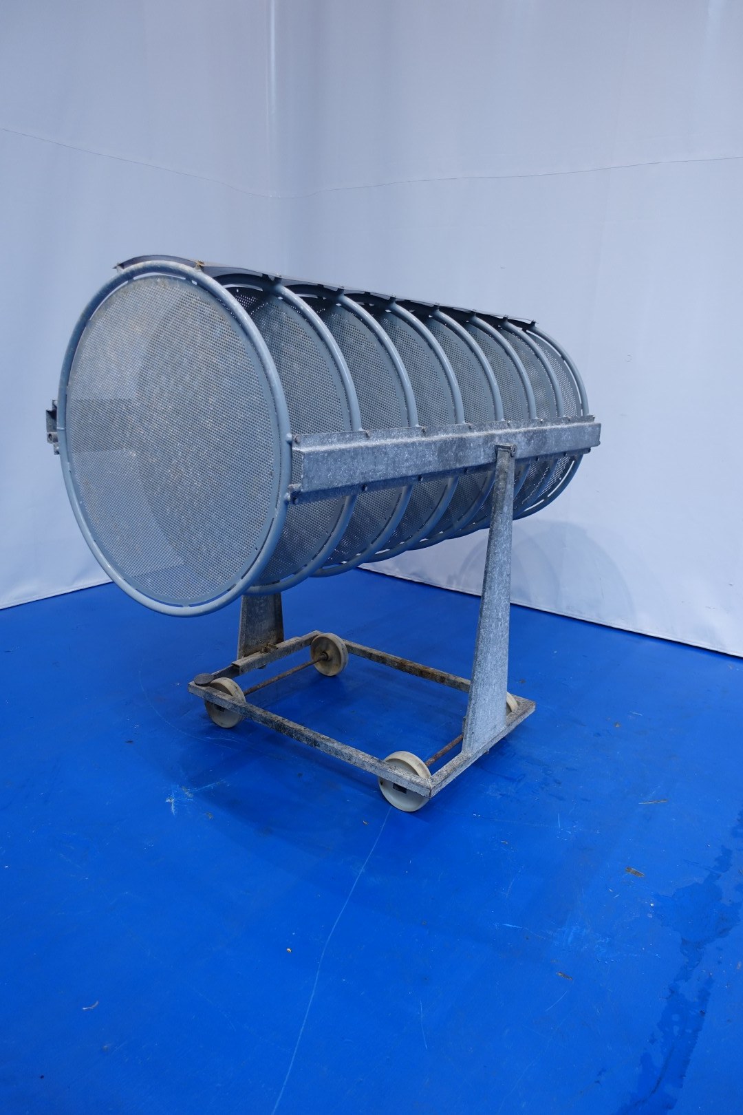 Cheese storage trolley for the maturing room, but specially for heavy round cheeses (up to 90kg round 75- 85cm), on mobile steel frame (round), Turnable. Used for Emmertaler cheeses. 7 cheese per rack placed inside. Each plate with perforated holes. Space between layers 25-26 cm. In total 4 complete sets. Dimensions: 115x80x218 (lxwxh) cm - weight: 115 kg per piece.