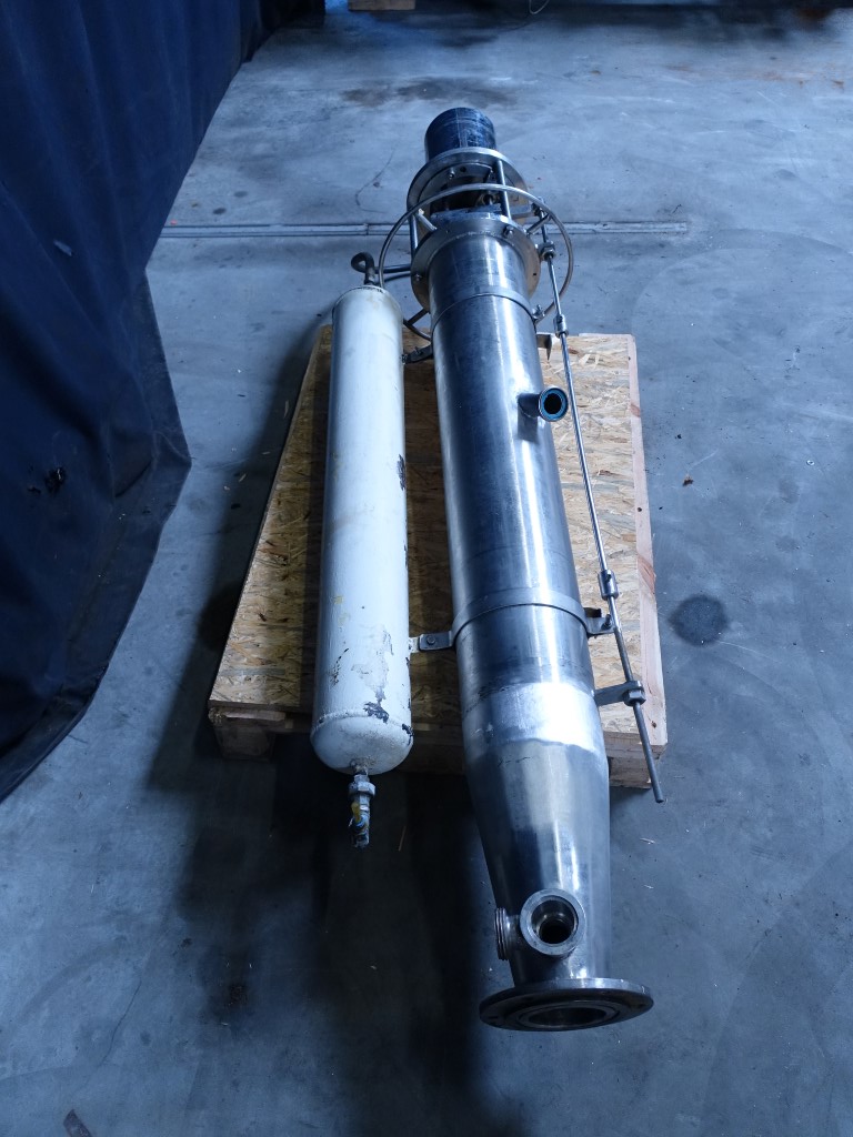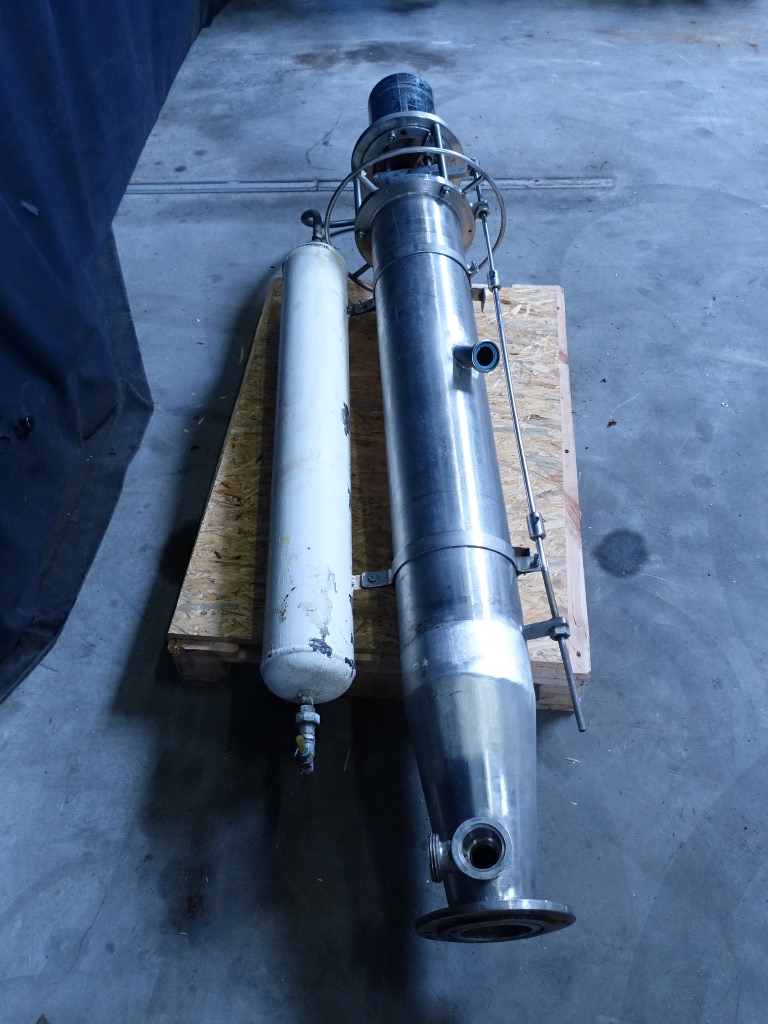 Compensator for margarine, 40 L. Diameter 20 cm, length 150 cm. Connections: 1,5'' Din inlet, flange connection to machine. Total dimensions: 50 x 60 x 220 cm.