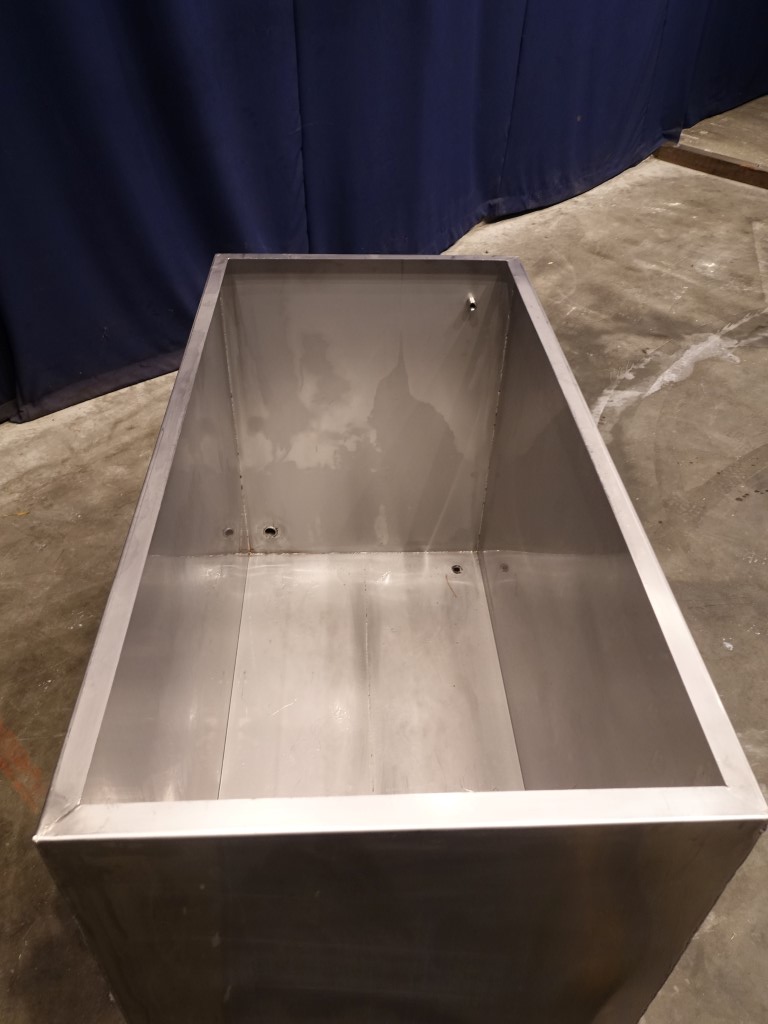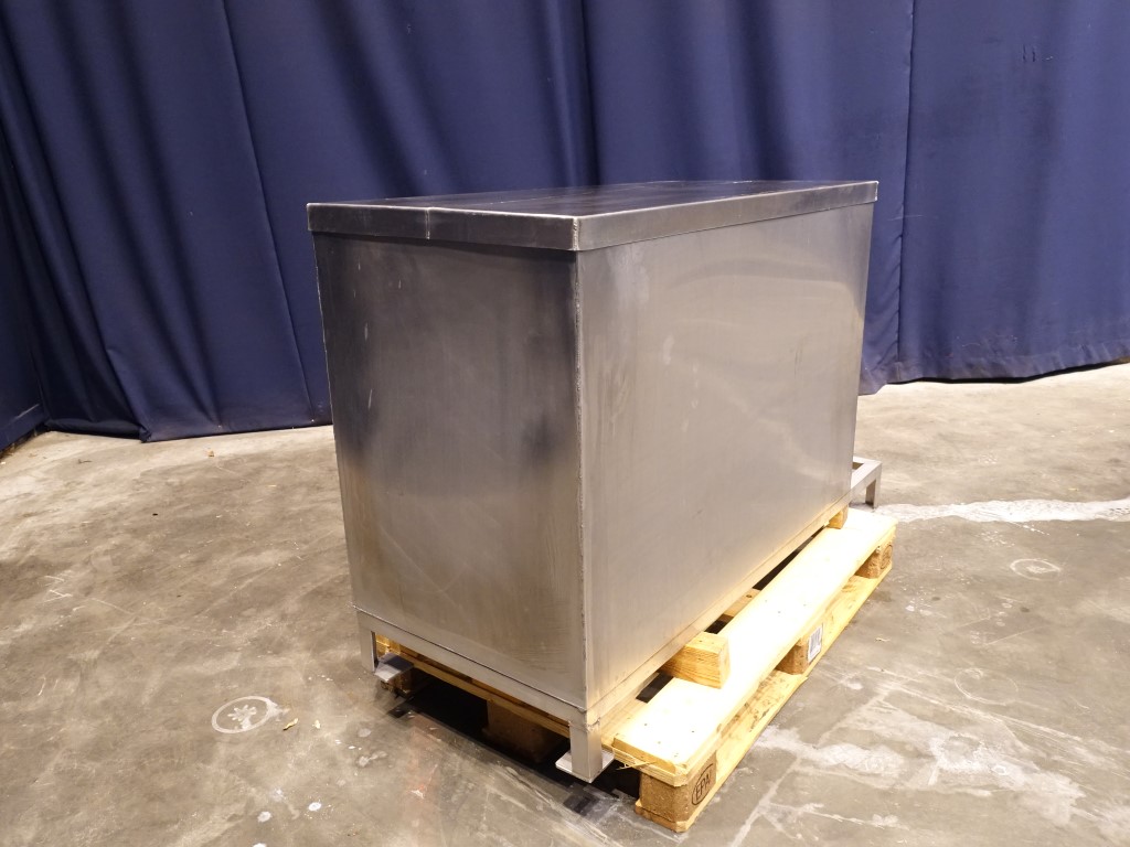 Leveltank. Open top with cover. Outlet flat to the side. Including Pentair centrifugal pump, type: PVM 1-2F, capacity: 0,7-2,4 m3/h, max. 25 bar, motor: 0,37 kW - 1,4 A - 2850 rpm. Frame mounted. Inside dimensions of tank 59 x 119 x 80 cm. Total dimensions: 150 x 65 x 100 cm.
