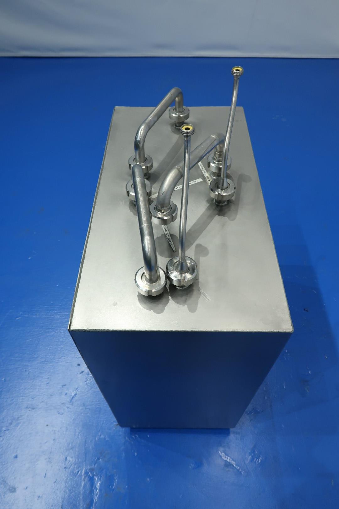 Laboratorium insulated mobile holding with 3 loops. A.) 1.66 ltr - 1min. 100 l/h. B.) 3,32 ltr - 2 min - 100 l/h. C.) 3,23 ltr - 2 min - 100 l/h. Connections: 2 x 1" Din - 2 x 15 mm Din. Total dimensions: 80x43x105 (lxwxh) cm - weight: 96 kg.