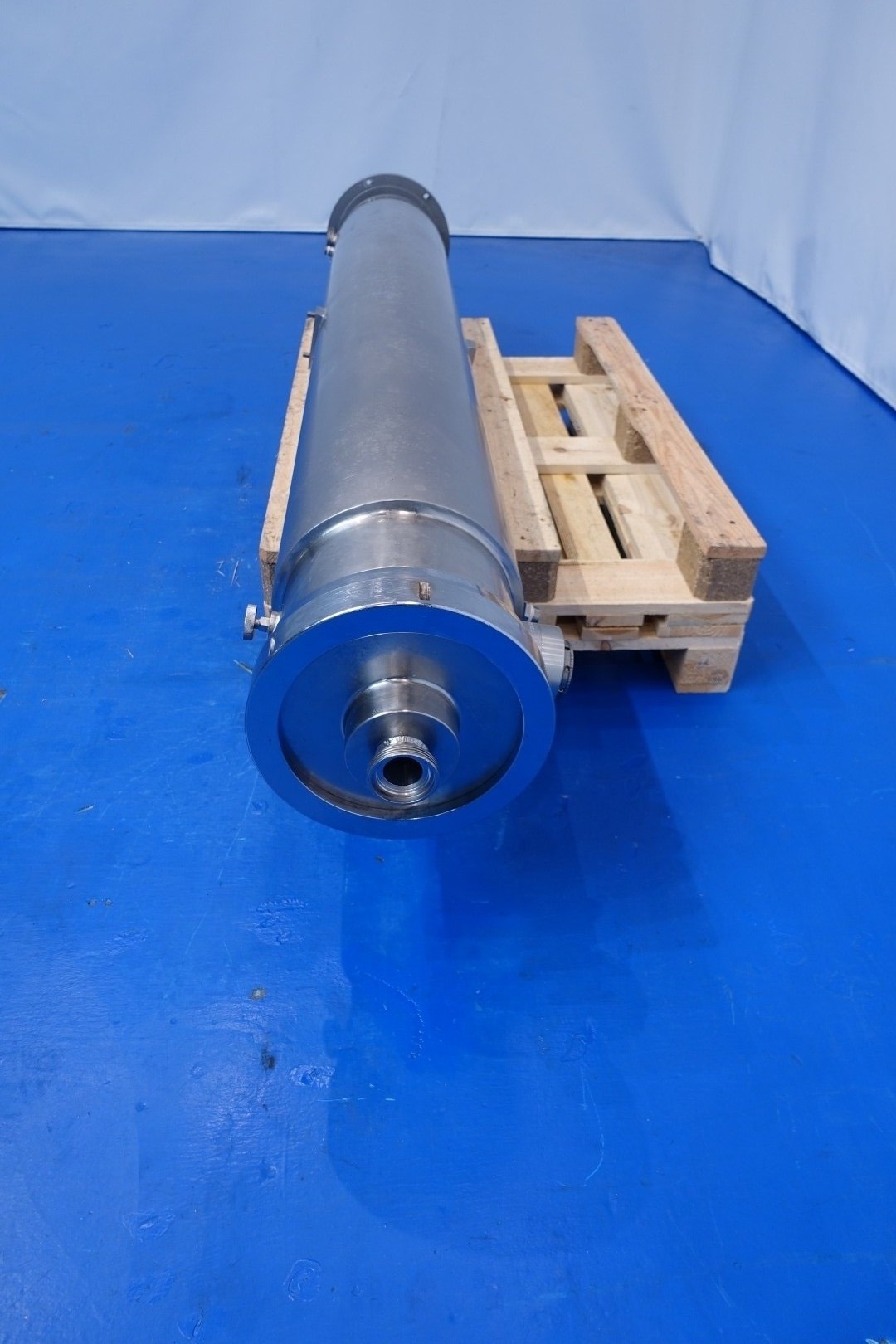 Double jacketed pinmixer. Shaft diameter 85 mm, 3 rows with 14 pins (42 pieces total) - cilinder diameter 250 mm with 2 rows with 19 and 20 (total 39) pieces. Cilinder length 195 cm. Connections: 2 x 2" Din and 2 x Ø 20 mm. Information on tube QC2 D400 and QC2 D552. Without drivework. Total dimensions 248x35x37 (lxwxh) cm - weight: 357 kg.
