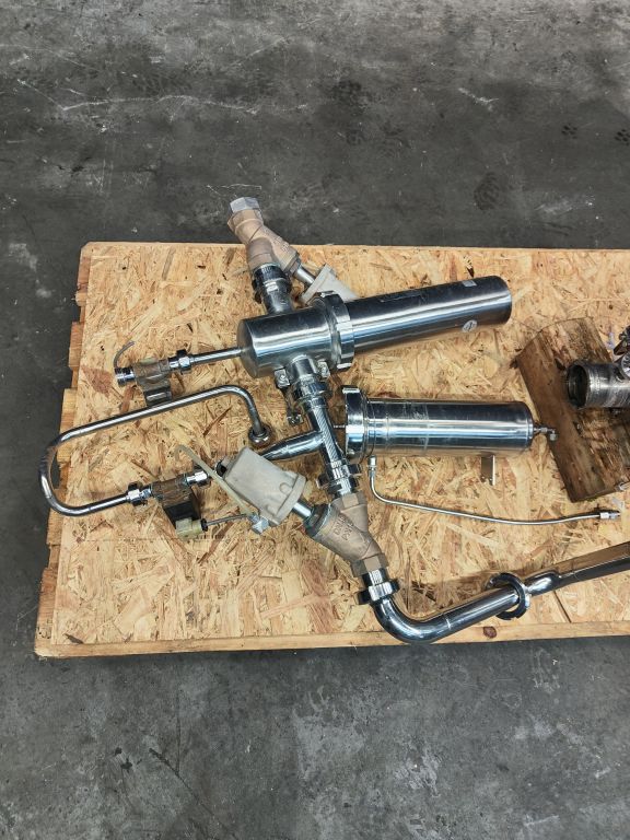 Steam street for creating hot air for sterilization of the infeed system of a cup filling machine. Including valves and filter. Previously used on an Ampack Ammann AA4-73 cup filling machine (8.000 cups in a hour).
