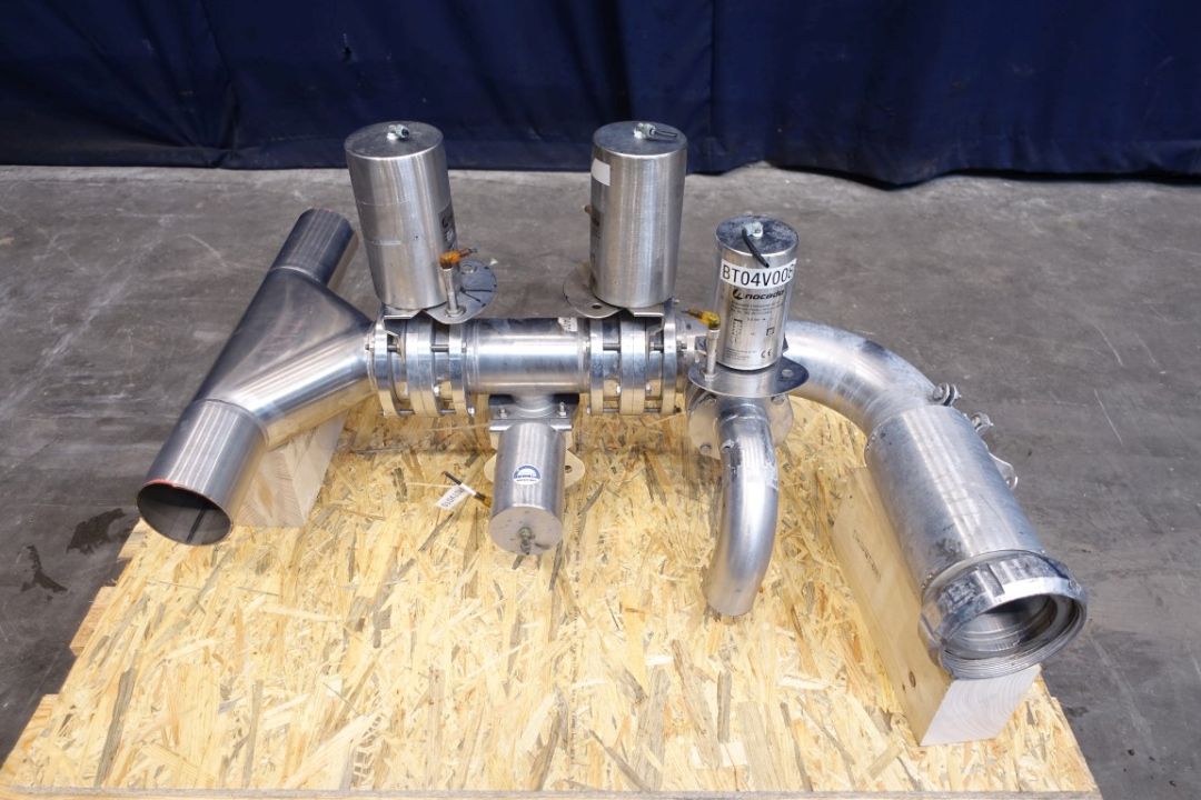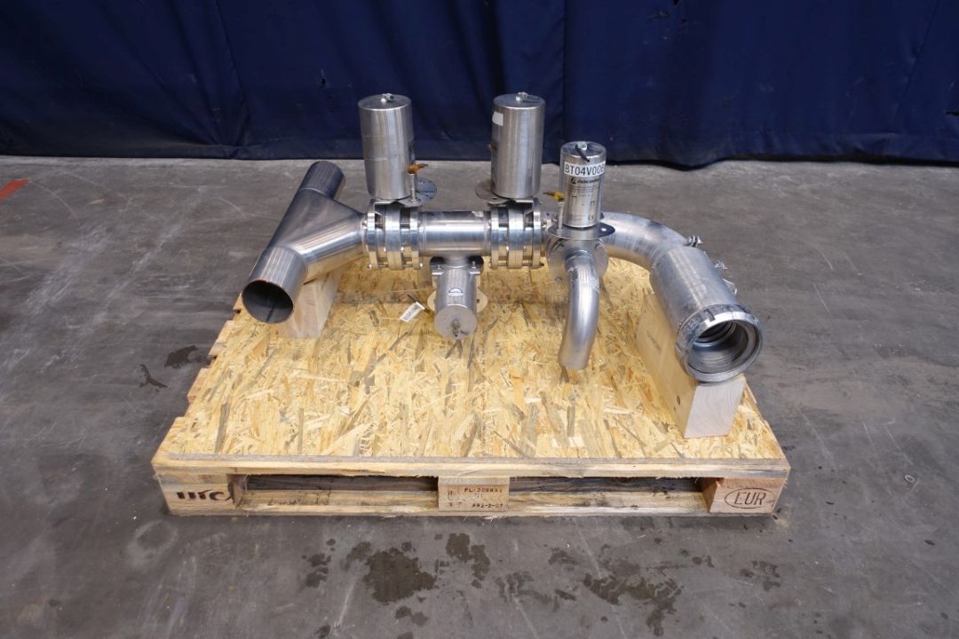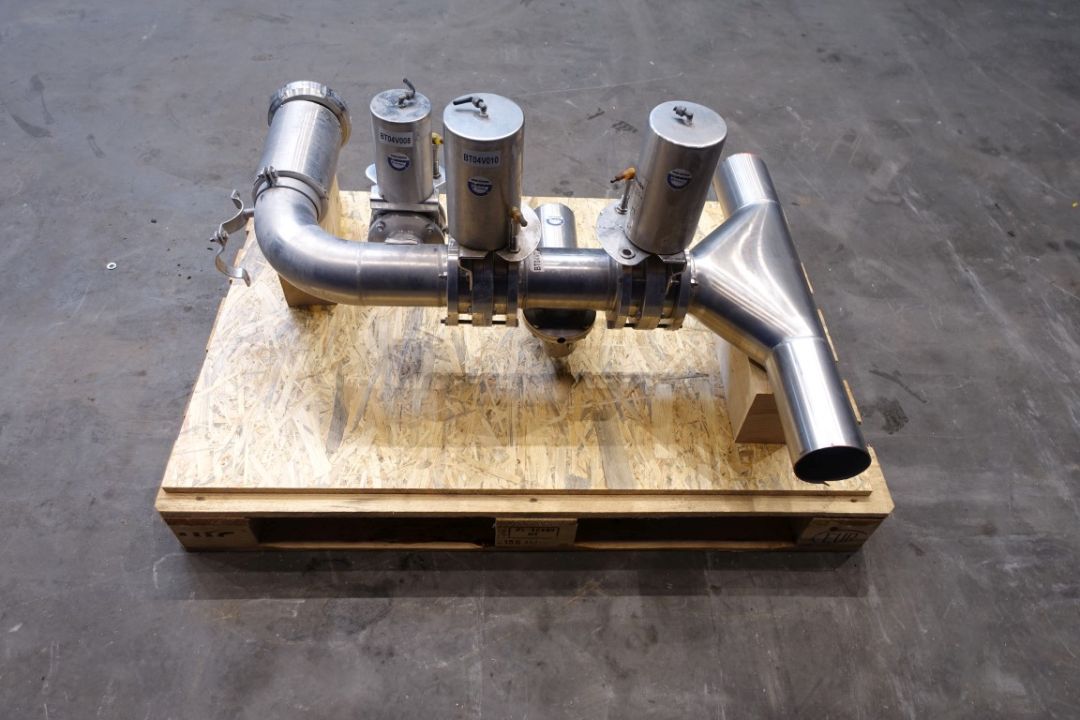 1x Trouser piece, 100 mm. 4x pneumatic valves, 2x DN100 + 2x DN65. Outlet 1x DN100 SMS.