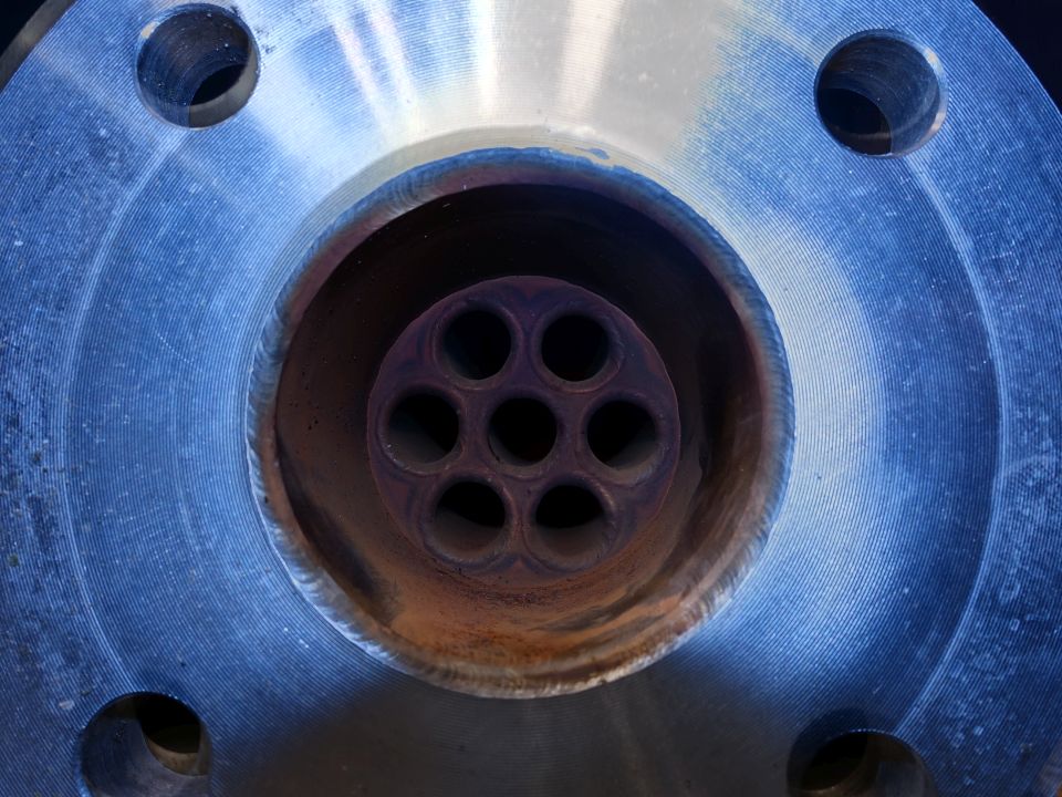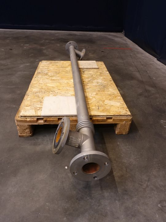 Non sanitary tubular heatexchanger for hotwater preparation with steam. Multitube. 1 Compartment. Straight design. Length: 2,1 mtr. Outsie diameter 75 mm. Inside diameter: 7 tubes of 16 mm inner diameter. Connection: product: 75 mm, flange and service: 75 mm flange.