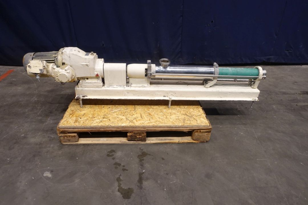 Screw / mono pump. Stator diameter 95 mm. Stator length 50 cm. Current motor: ± 2,2 kW - n2 = 72-360 mrpm. Steel frame mounted. Connections: 2,5''/2,5''.