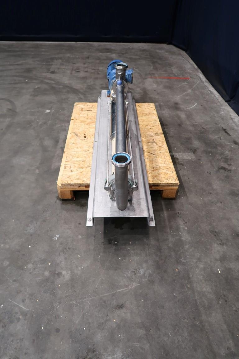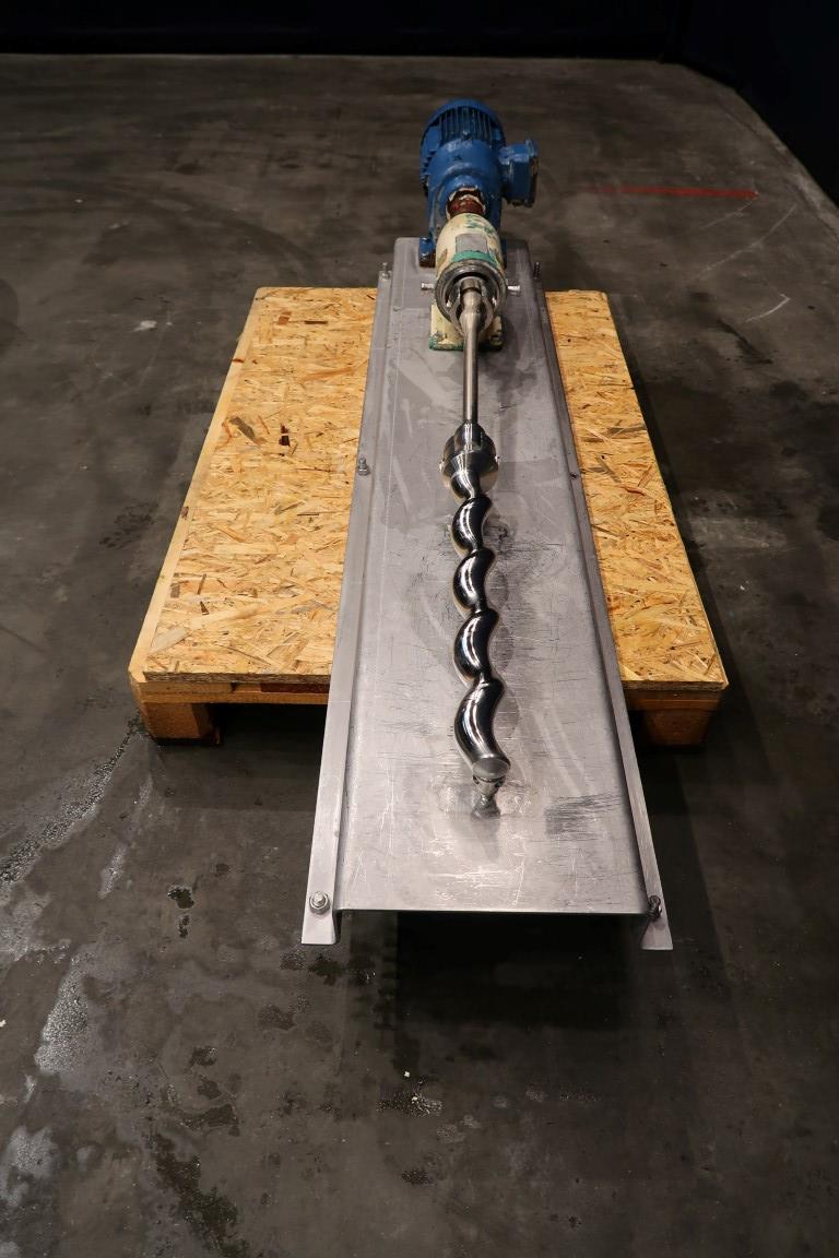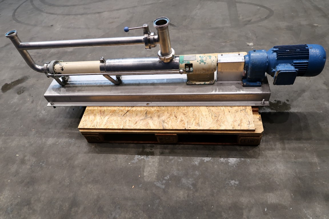 Screw / mono pump. Stator diameter 35 mm. Stator length 100 cm. Current motor: unknown. Steel frame mounted. Connections: DN65/DN65.