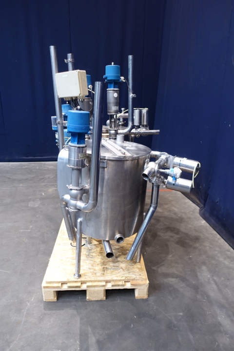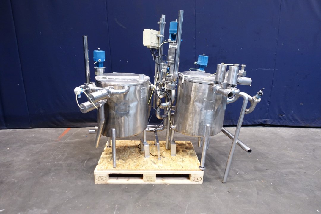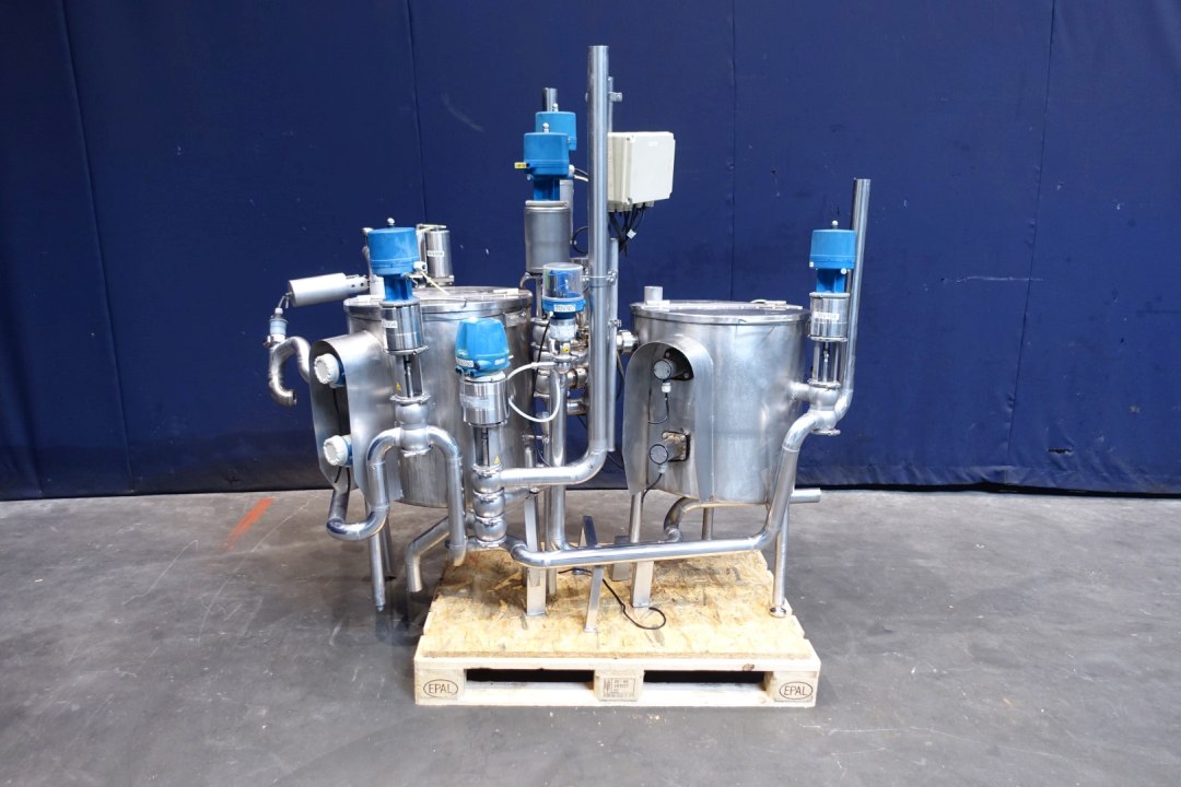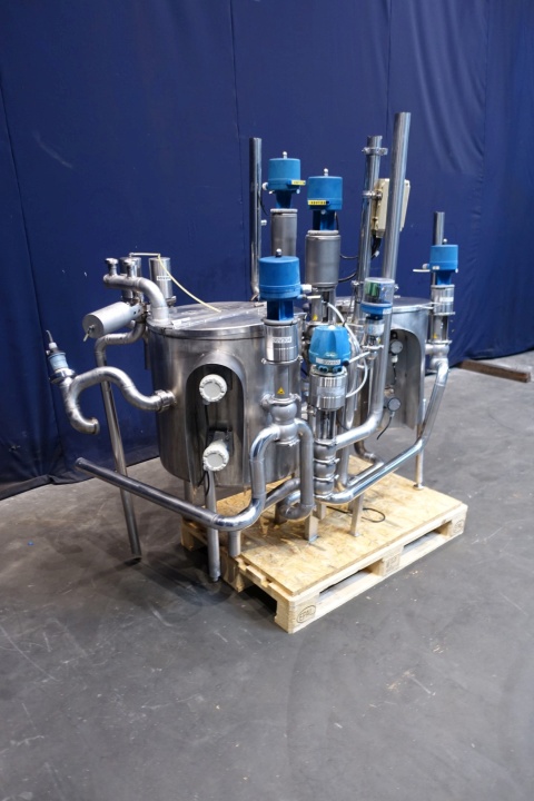2 x Vessel with valves and sensors for used for CIP. Connected with piping and valves. Gea Tuchenhagen valves, each tank 2 x level sensors. Dimensions: 200x1110x184 (lxwxh) cm, weight: 238 kg's.